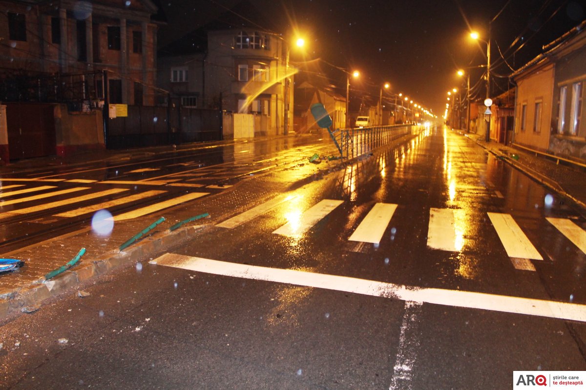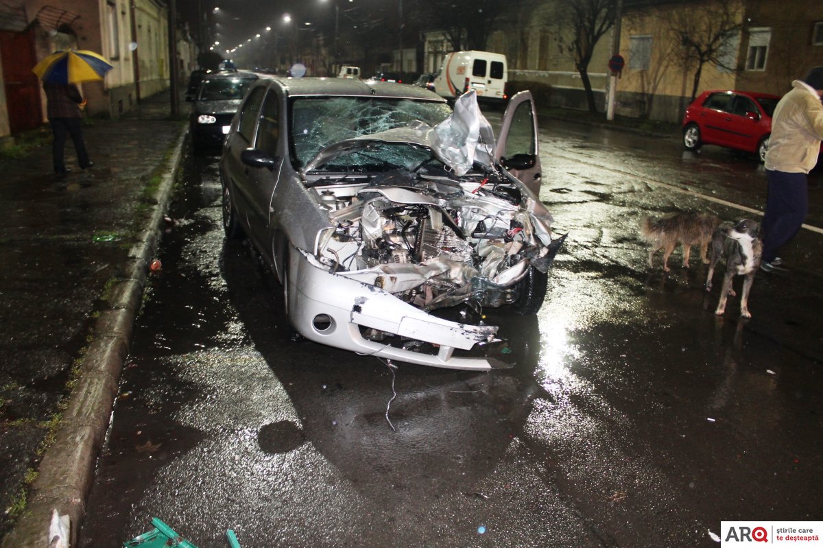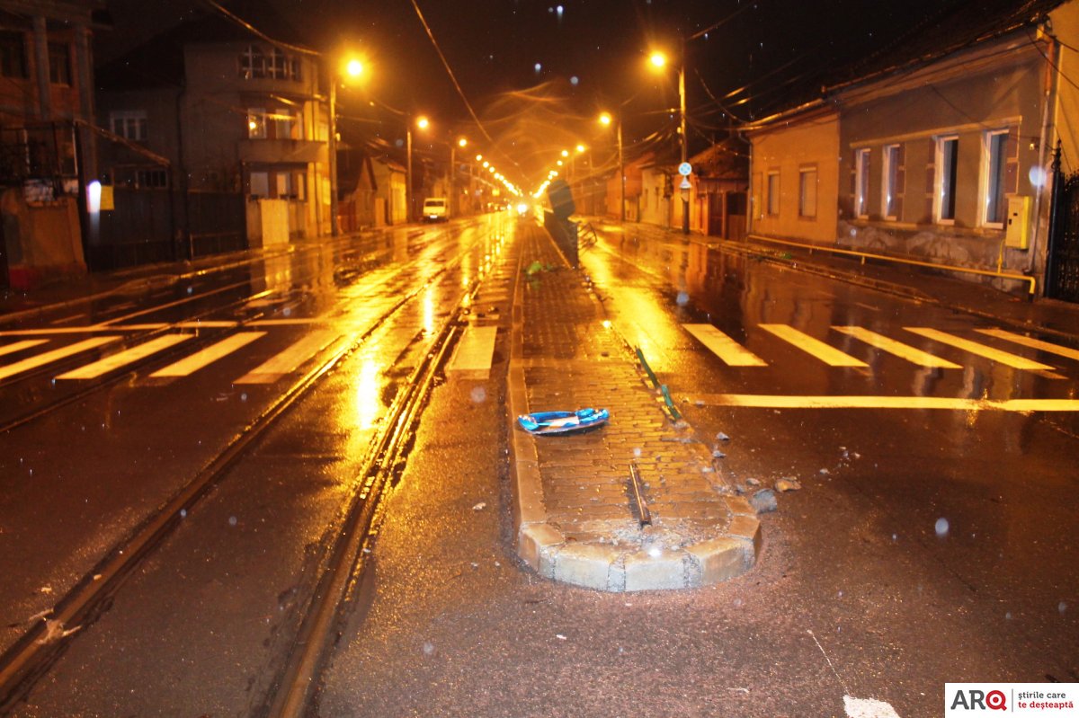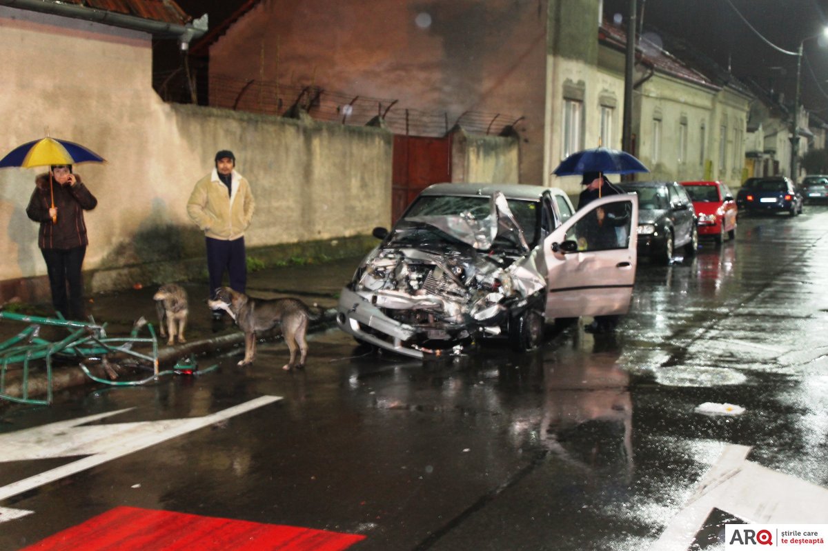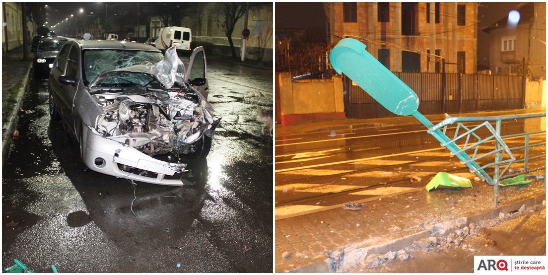 Un accident care putea avea urmări foarte grave a avut loc, noaptea trecută, în Arad, la intersecția străzilor Andrei Șaguna – Kogălniceanu – Condurașilor.