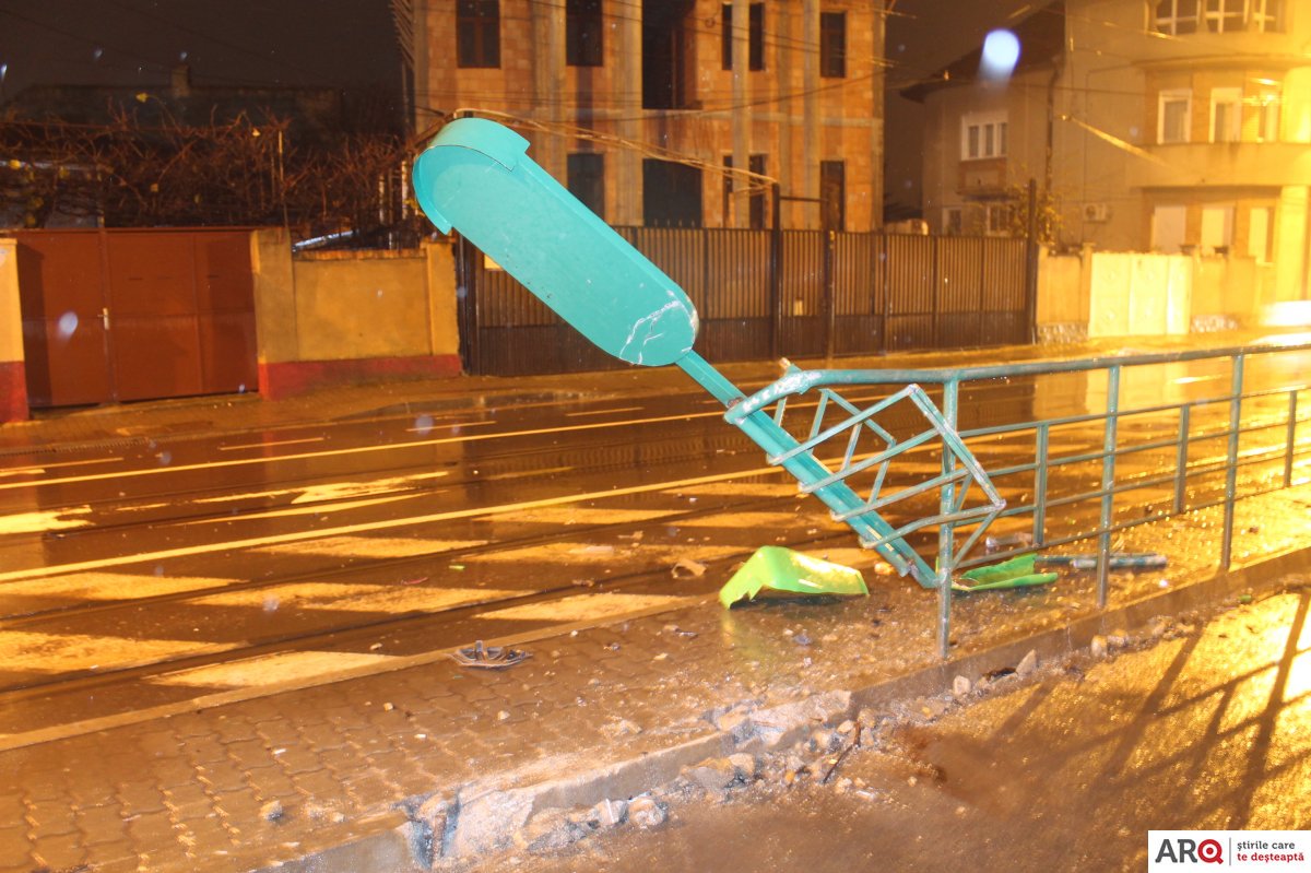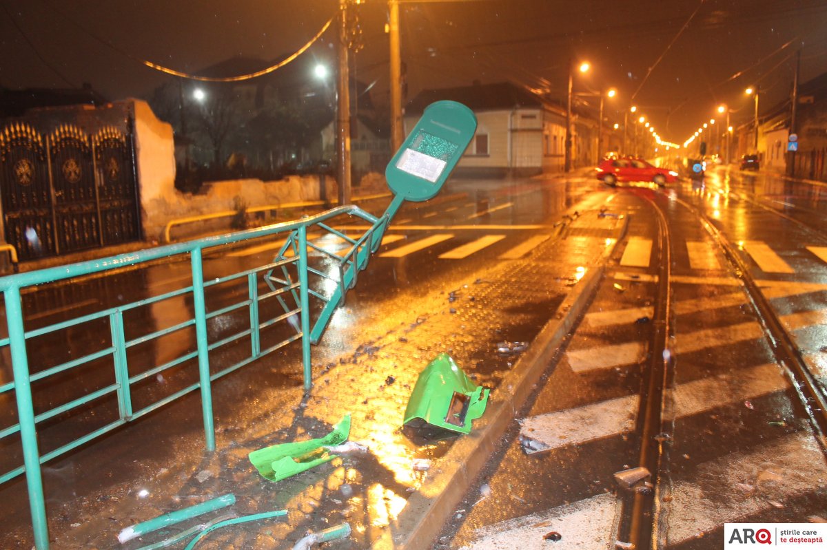 [FOTO] Arad: staţie de tramvai distrusă parţial de un şofer