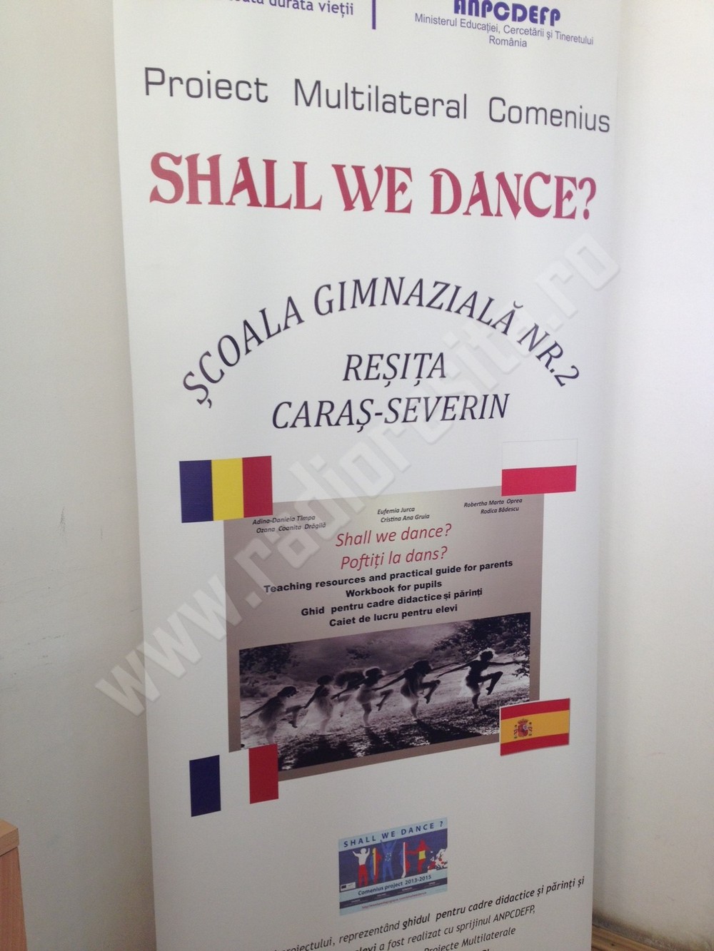 Ultima etapă a proiectului „Comenius Shall we dance” a început astăzi la Şcoala gimnazială nr. 2 din Reşiţa. Proiectul a fost implementat împreună cu alte trei unităţi şcolare din Franţa, Polonia, şi Spania, iar copiii români au avut prilejul să se familiarizeze pe parcursul acestuia, cu dansurile şi tradiţiile din ţările vizitate. În această săptămână, este rândul elevilor străini să cunoască ţara noastră, în fapt, zona Banatului, pentru că programul pregătit de gazde cuprinde ateliere şi spectacole de dans, dar şi activităţi de informare, de agrement şi vizite la obiective turistice. O primă surpriză au avut oaspeţii când au primit tricouri personalizate în culori diferite: galben pentru România, roşu pentru Spania, albastru pentru Franţa şi alb pentru Polonia, dar gazdele au pregătit şi alte momente speciale pentru oaspeţii din străinătate. La această ultimă activitate a proiectului participă un grup de 18 elevi din Franţa, însoţiţi de trei profesori şi câte patru profesori polonezi şi spanioli. Joi, în ultima zi de activităţi din proiect vor avea loc: un spectacol – concurs de dans, se va prezenta filmul produs pe parcursul derulării proiectului cu dansuri naţionale ale celor 4 ţări participante şi se vor acorda certificatele de participare.