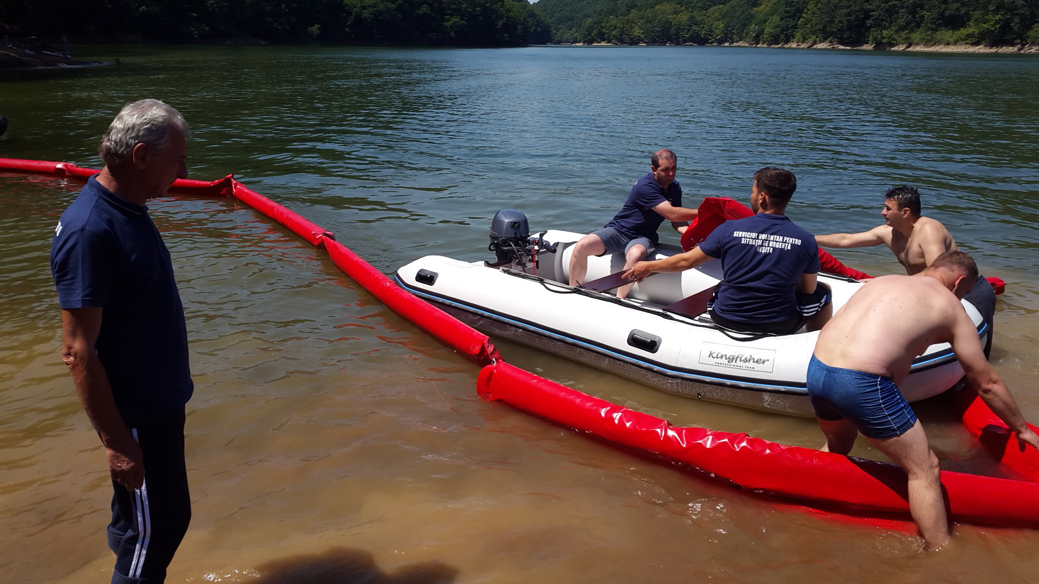 „Au fost utilizate bărci cu motor precum și plutitoare pentru a limita poluarea chimică. SVSU Reșița a participat la acest exercițiu cu o barcă cu motor, achiziționată în cadrul proiectului “Prevenirea inundațiilor-pentru o calitate mai bună a vieții”, derulat în parteneriat cu orașul Kikinda din Republica Serbia, precum și cu o echipă de deblocare-salvare”.