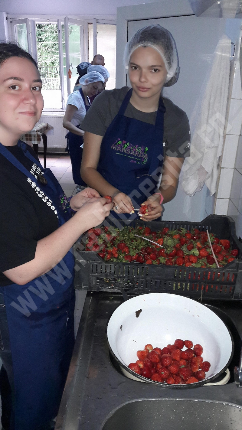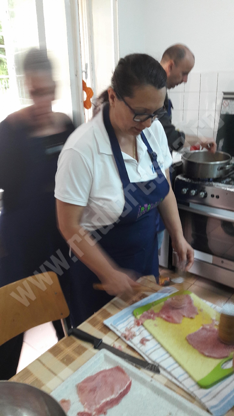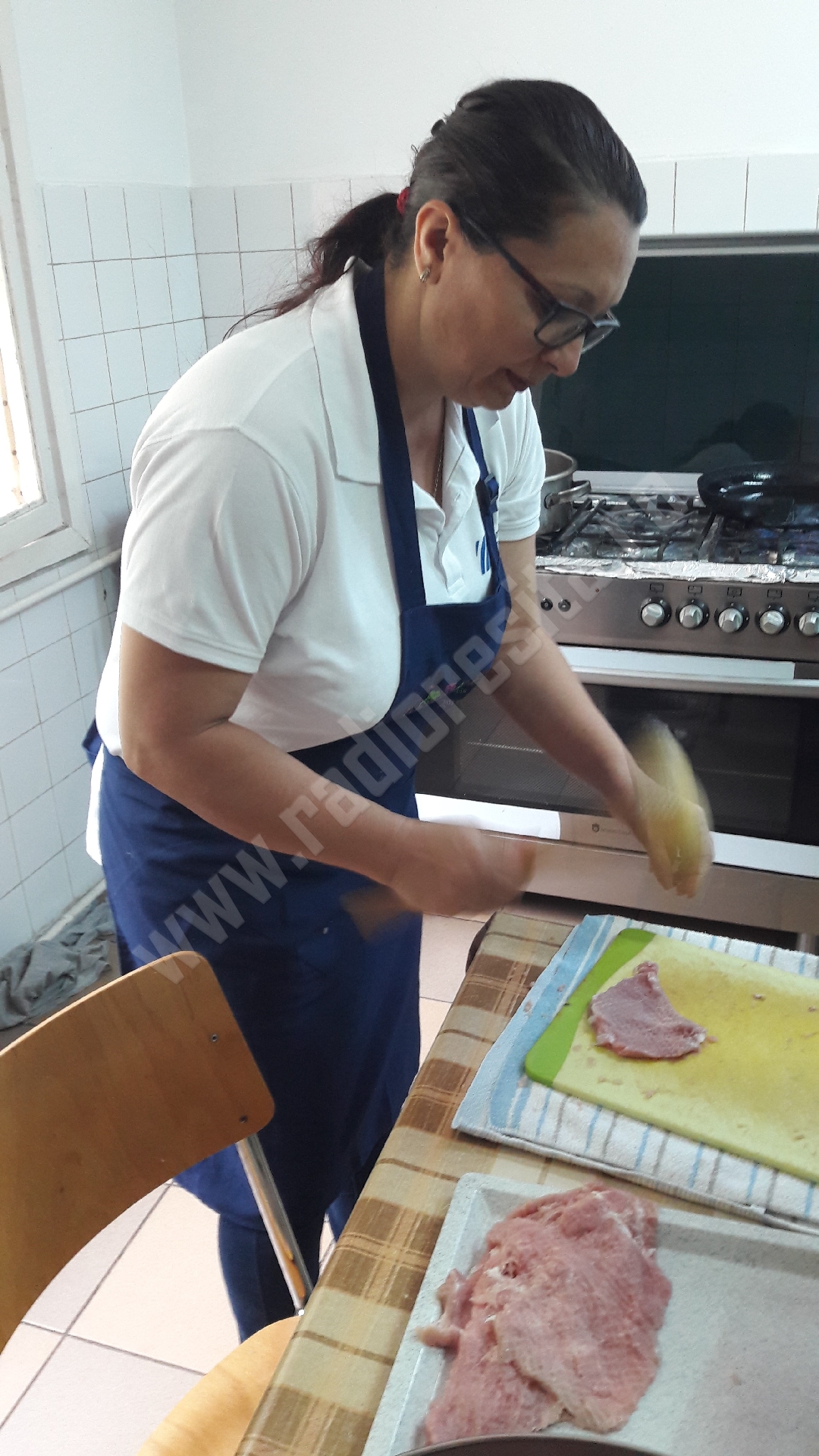 Voluntarii Centrului Mansarda împreună cu jurnaliştii pregătesc masa de prânz pentru copiii din Centrul de zi pe care Fundaţia Humanitas Pro Deo îl administrează.