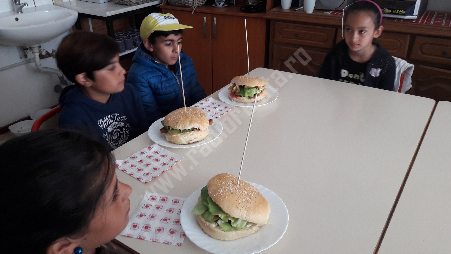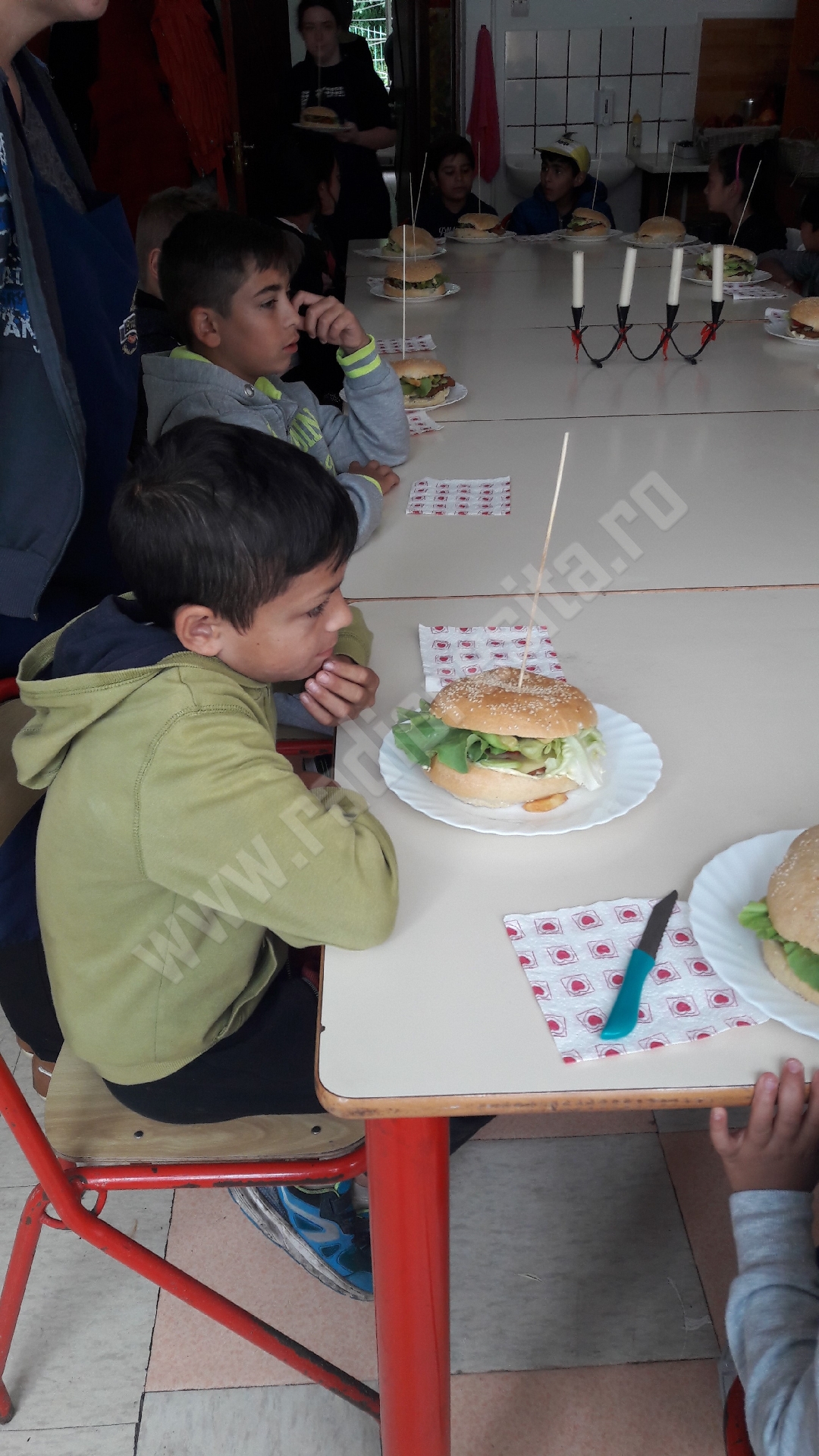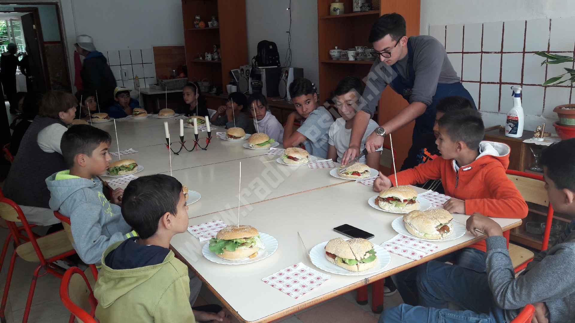 Pentru cei mici am pregătit, sub atenta supraveghere a bucătarului șef, Ocsi Pozsar, hamburger și salată de fructe exotice: