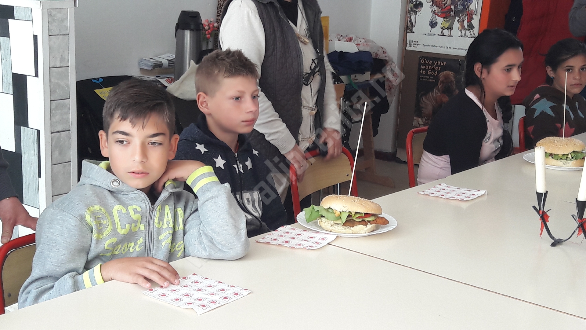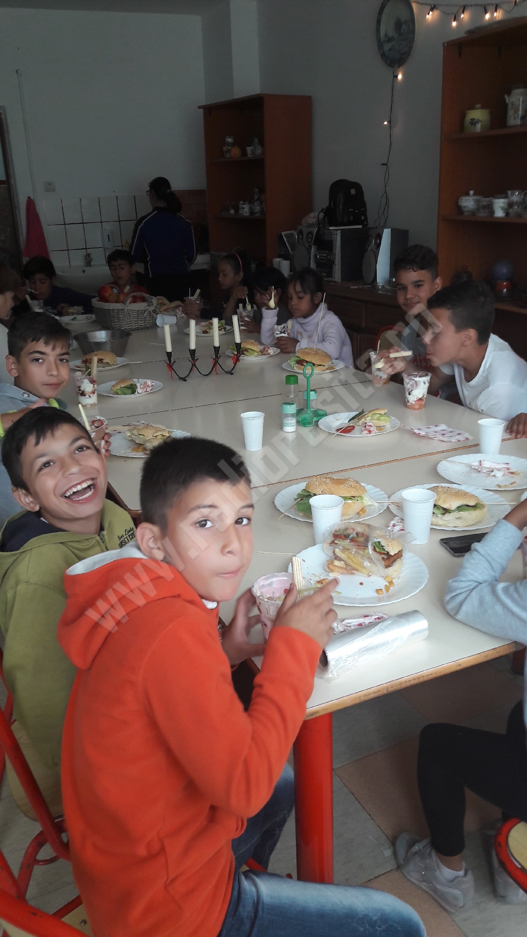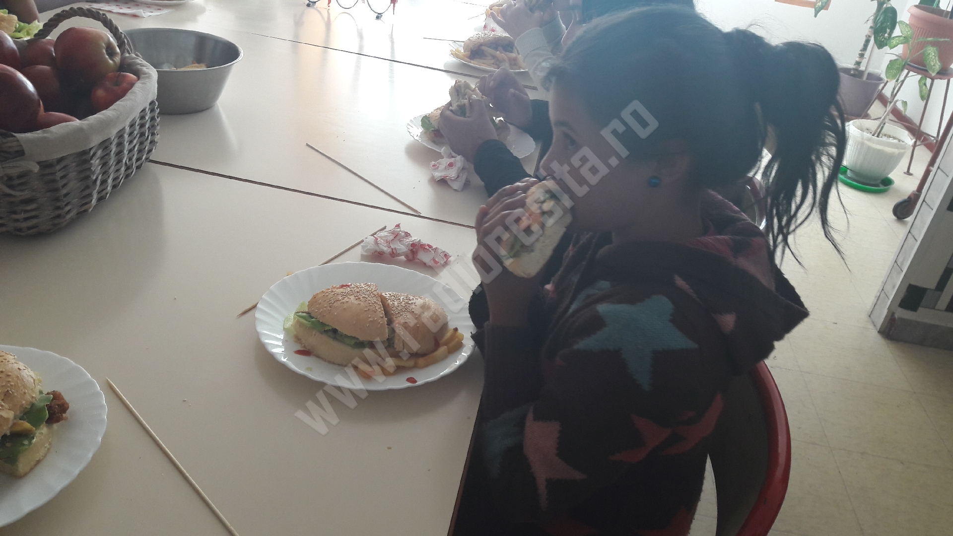 Pentru cei mici am pregătit, sub atenta supraveghere a bucătarului șef, Ocsi Pozsar, hamburger și salată de fructe exotice: