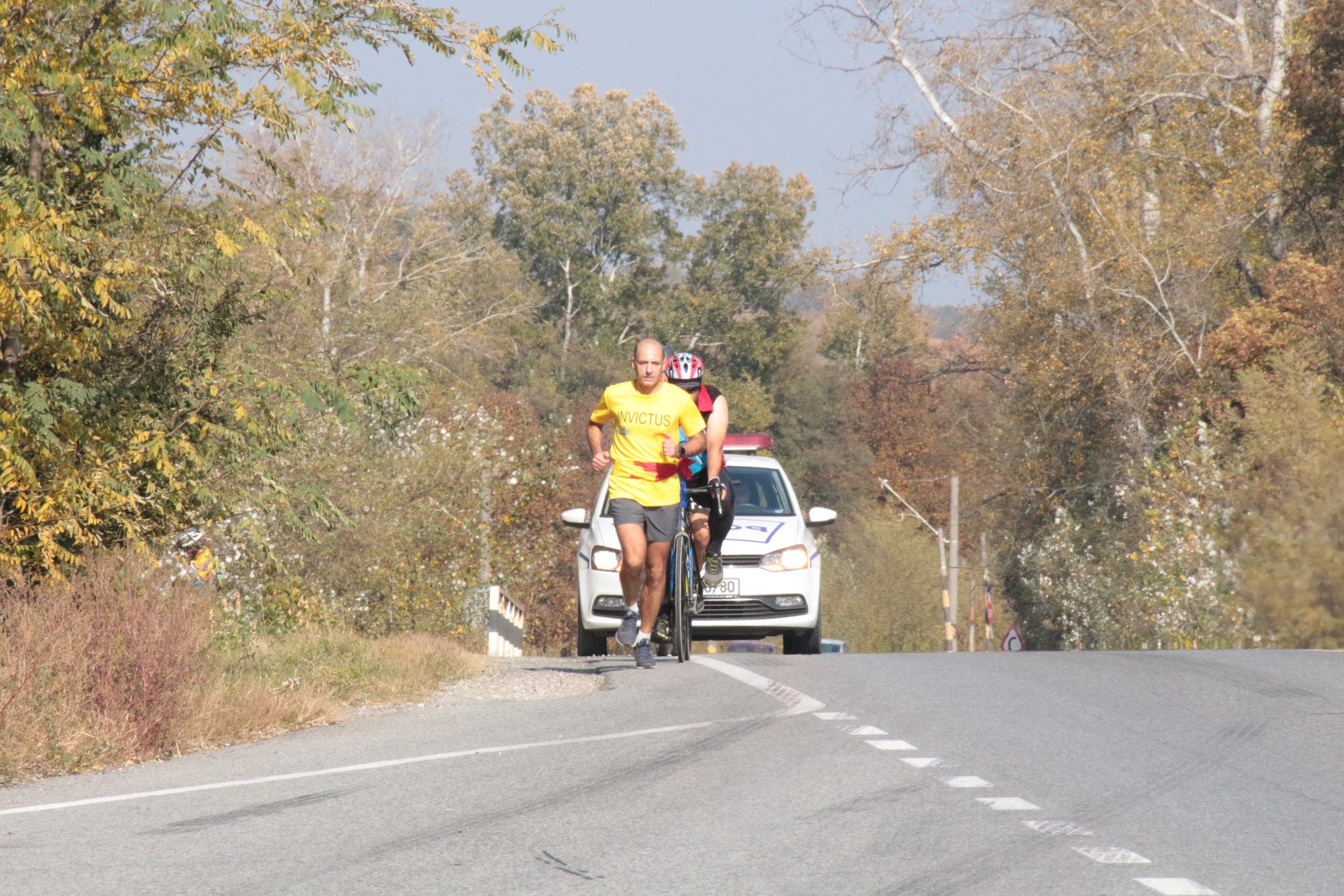 A ajuns miercuri seară, în orașul Caransebeș, de unde în această dimineață voluntarii au alergat sau au început pedalarea spre Drobeta Turnu Severin.