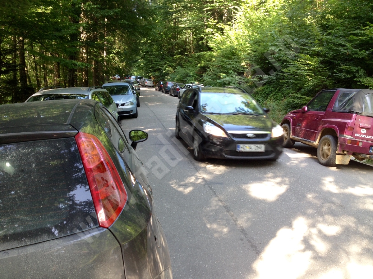 La sfârşit de săptămână, aceeaşi problemă este constată şi la Cascada Bigăr, unde turiştii sunt nevoiţi să parcheze de-o parte şi de alta a drumului naţional 57B şi astfel, să-l blocheze.