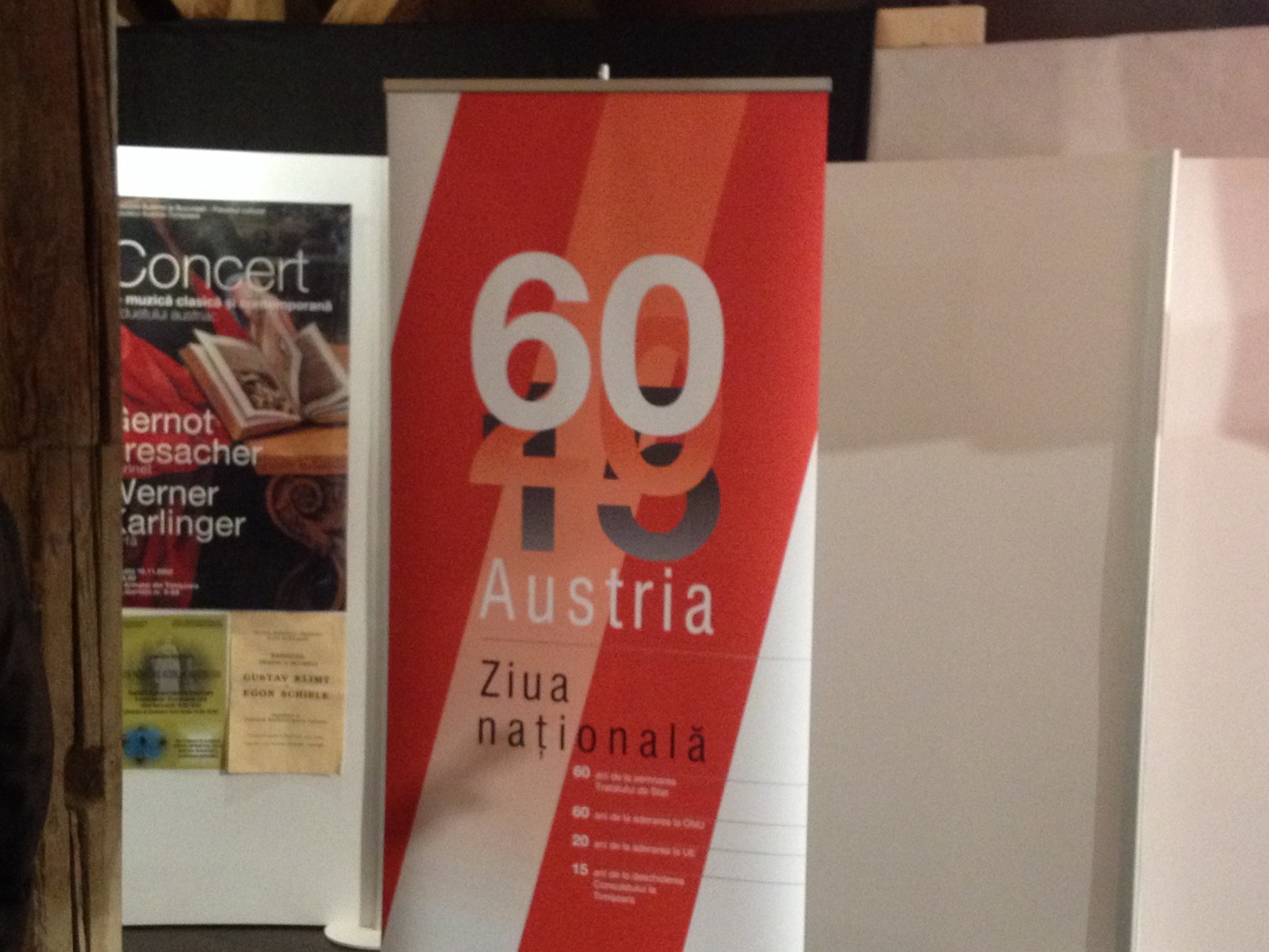 Cu acest prilej, la Muzeul de Artă dela Bastionul Therezia a avut loc o recepţie oficială, avându-l ca invitat special pe Ambasadorul Austriei la Bucureşti E.S. Mag. Gerhard Reiweger. Evenimentul s-a consumat în prezenţa personalităţilor din toate cele şase judeţe: Arad, Bihor, Caraş-Severin, Hunedoara, Satu-Mare şi Timiş, ale circumscripţiei consulare austriece, reprezentanţi ai corpului consular, ai oamenilor de afaceri austrieci, ai cultelor, ai universităţilor şi ai cetăţenilor austrieci din România. De asemenea, au fost prezente autorităţile locale şi judeţene, europarlamentari şi parlamentari, oameni de afaceri şi reprezentanţi ai societăţii civile. Ziua Austriei la Timişoara a marcat totodată 4 evenimente istorice în aceeaşi zi, precum: 60 de ani de la semnarea Tratatului de Stat, 60 de ani de la aderarea la ONU, 20 de ani de la aderarea la UE şi 15 ani de la deschiderea Consulatului în municipiul de pe Bega.