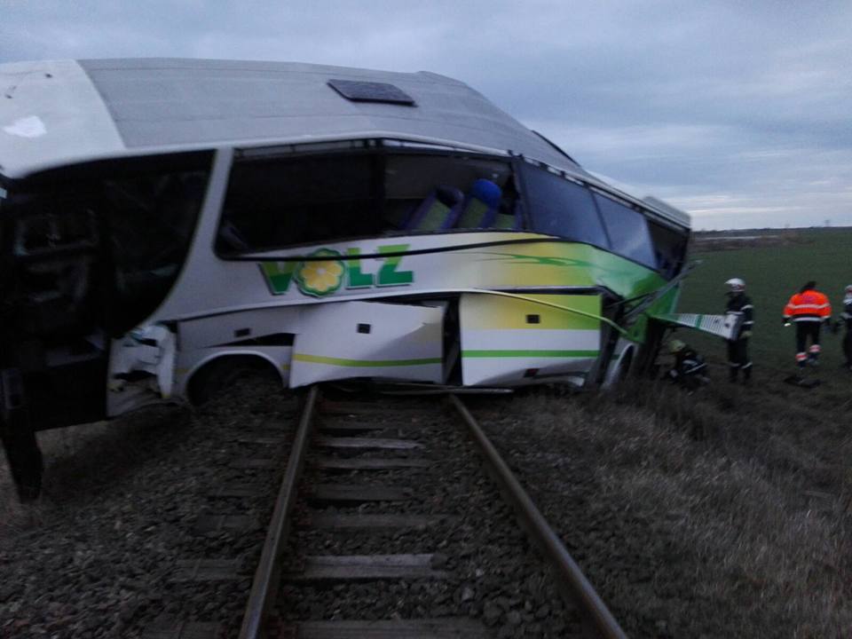 Accident grav de circulaţie în judeţul Timiş. Un tren de călători a lovit în plin un autocar.