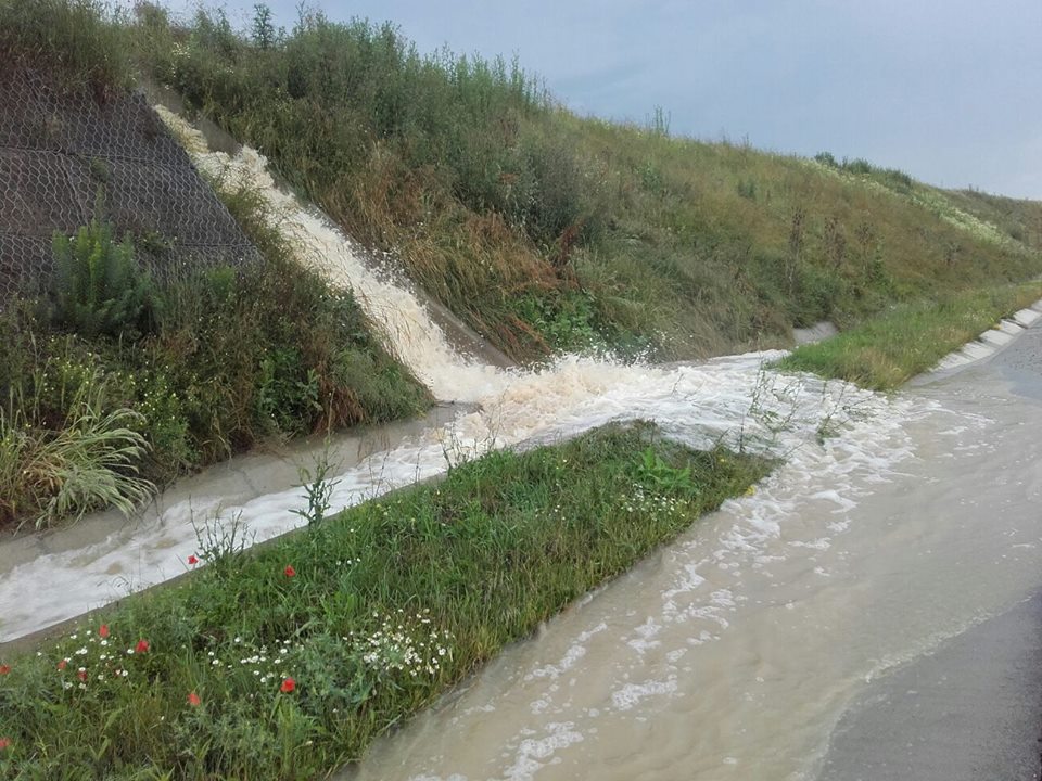 [FOTO] Autostrada Timişoara – Lugoj, inundată de apa venită de pe dealuri