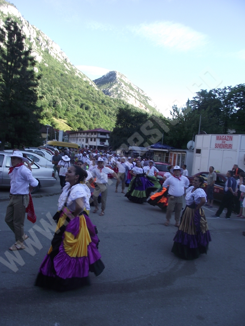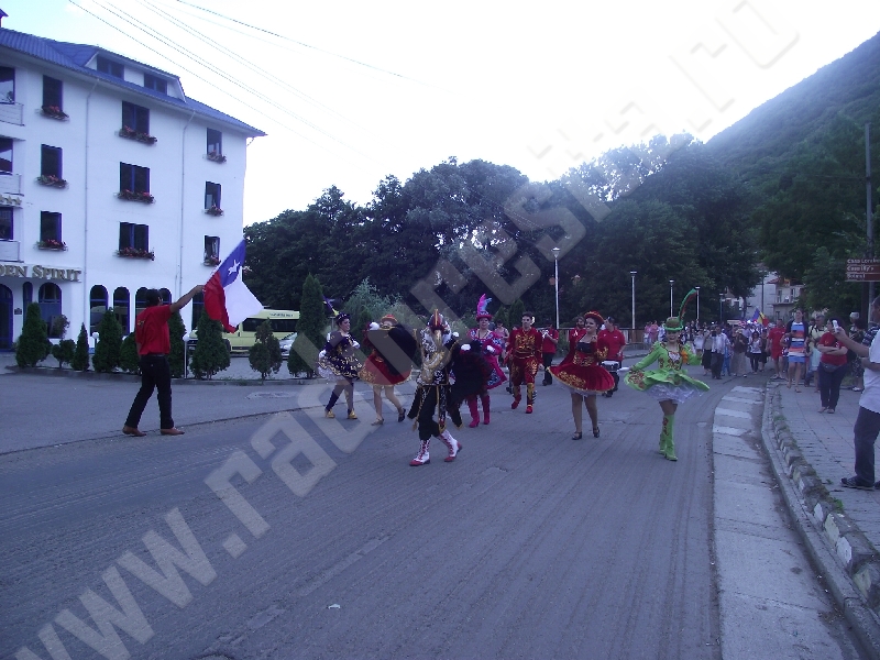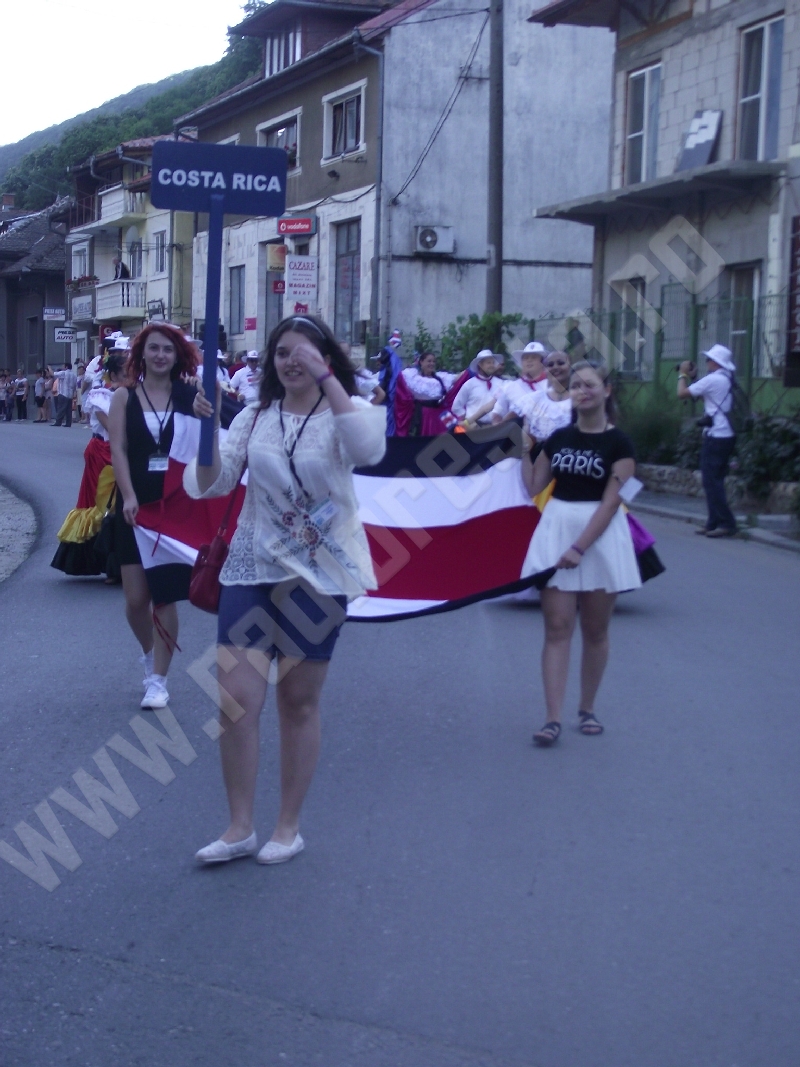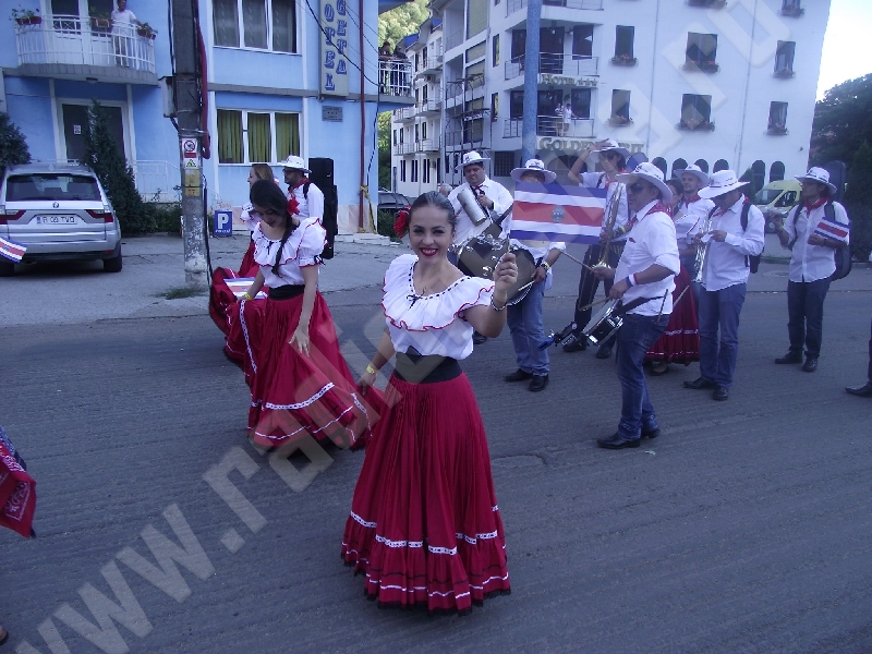 Ca de obicei, manifestările au început cu o paradă a portului popular desfăşurată pe traseul cuprins între Fabrica de pâine şi Parcul Vicol, unde se află Grădina de Vară a staţiunii, locul unde vor avea loc spectacolele din fiecare seară a festivalului. Pe lângă formaţiile artistice prezente în prima seară, la paradă au participat şi dansatorii din Rusca Teregova, Măru, Zăgujeni şi Vermeş. Prezenţa artiştilor a fost salutată de numeroşii localnici şi turişti prezenţi pe traseul paradei, aceştia apreciind parada ansamblurilor cărăşene, dar şi pitoreasca prezenţă a ansamblurilor folclorice din Costa Rica şi Chile. Ansamblul din Columbia este aşteptat pe parcursul zilei de astăzi şi, din păcate, dansatorii din Sri Lanka nu au reuşit să obţină vizele necesare pentru a fi prezenţi la manifestările de pe Valea Cernei.