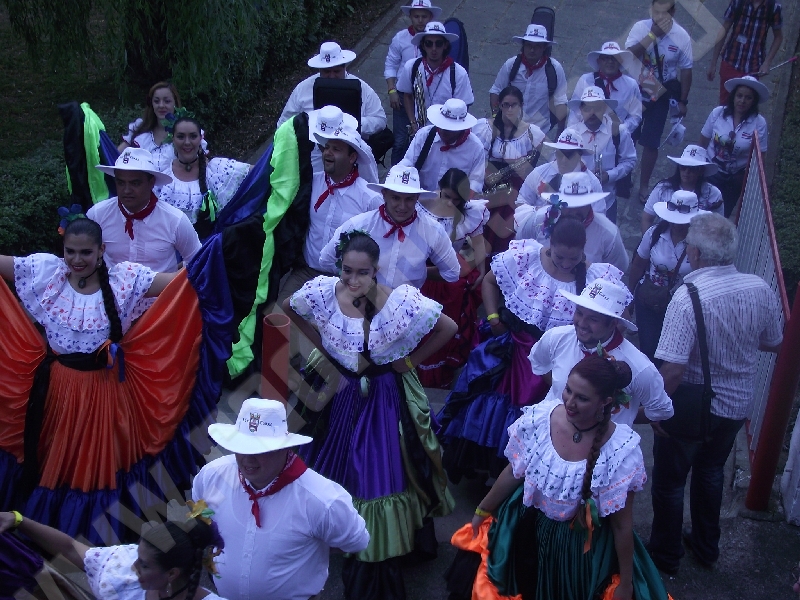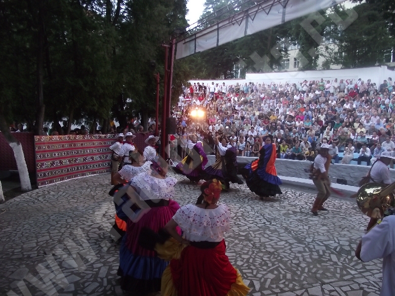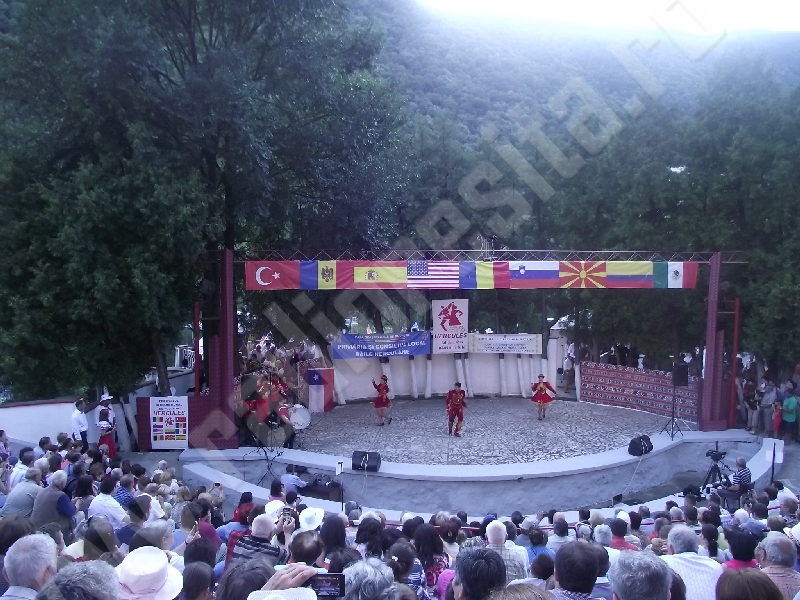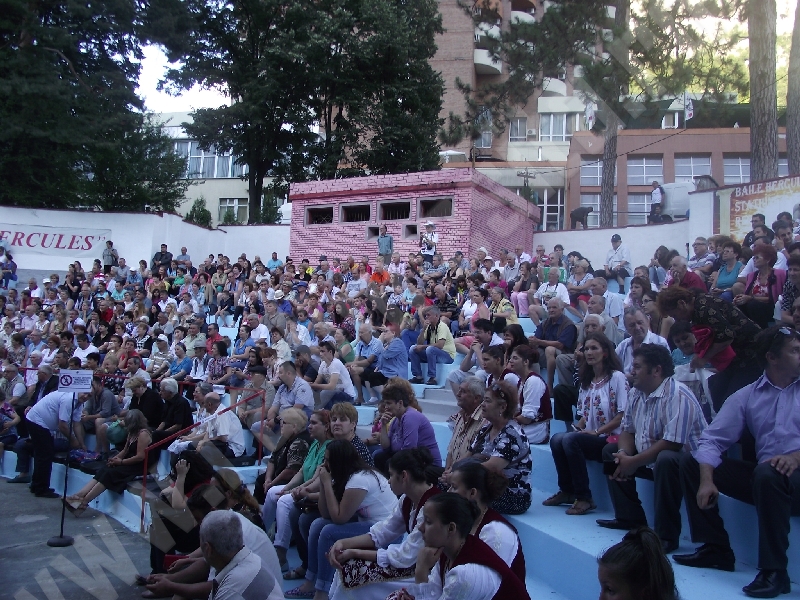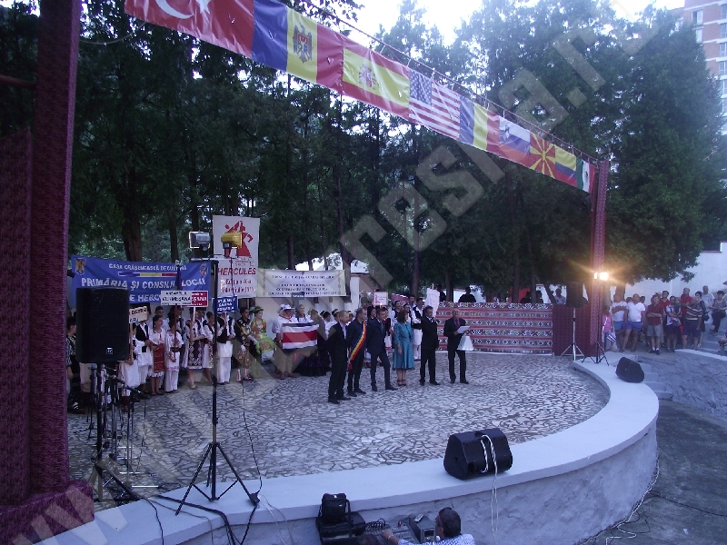 Parada s-a încheiat la Grădina de Vară, în aplauzele spectatorilor prezenţi atât pe aleile Parcului Vicol, cât şi în gradele Grădinii de Vară, care au început să se umple înainte de începerea spectacolului. Deschiderea oficială a festivalului a fost făcută de prof. Gheorghe Ţunea – directorul festivalului, în prezenţa noii conduceri a oraşului Băile Herculane – primarul Cristian Miclău şi viceprimarul Ştefan Peneşel, precum şi conducerea Consiliului Judeţean Caraş-Severin – prin preşedintele Silviu Hurduzeu. Prima seară de spectacole a fost deschisă de Ansamblulo ARMENIŞANA din Armeniş, după care pe scenă şi-a făcut loc muzica sud-americană! Primul a venit în faţa spectatorilor Ansamblul BANDA RENACER din Chile, cu un program de muzică şi dansuri din nordul statului, apoi costaricanii Ansamblului REY CURRE au susţinut un program artistic specific regiunii Puntarenas. Spectacolul a continuat până după înserare cu cântece şi dansuri bănăţene aduse de dansatori şi solişti vocali ai formaţiilor artistice SATUL MEU din Ramna, BOCŞANA din Bocşa şi căluşarii din Rusca Teregova.