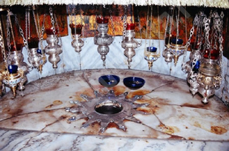 În partea de Răsărit a ei, localizat printr-o stea de argint fixată în marmură, se află locul unde a fost ieslea. Privirea spre ea este atrasă de o inscripţie în latină: „Hic de Virgine Maria Jesus Christus natus est” (Aici a născut Fecioara Maria pe Iisus Hristos). Cincisprezece candele ard permanent în jurul ei.