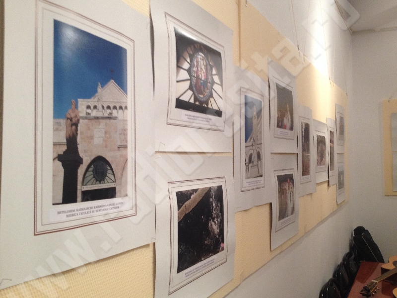 În cele 30 de fotografii de pe simeze, cei doi oameni de cultură cărăşeni au imortalizat pe peliculă cea mai veche şi originală biserică din Ţara Sfântă, basilica Naşterii Domnului sau Biserica Nativităţii.