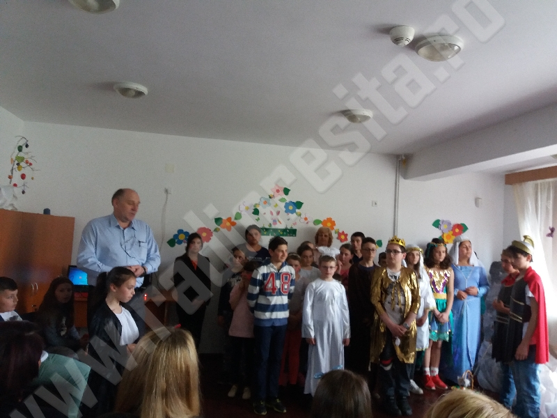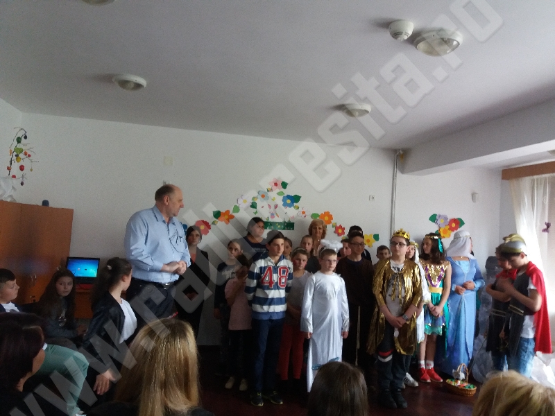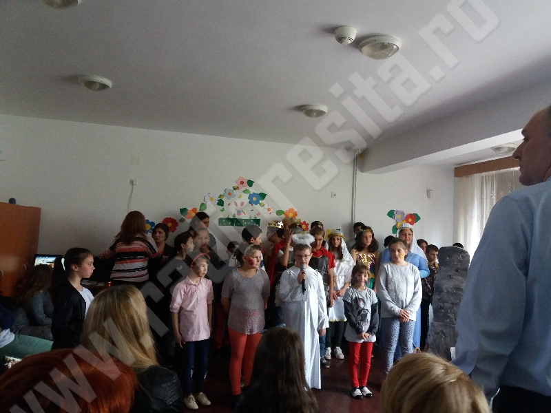 Copiii de la Centrul de zi ,,ABC” din Reșița au petrecut astăzi clipe frumoase alături de părinți și profesori. Într-un cadru festiv, micuții au cântat și au recitat poezii, iar la final, iepurașul nu s-a lăsat prea mult așteptat și le-a adus cadouri.