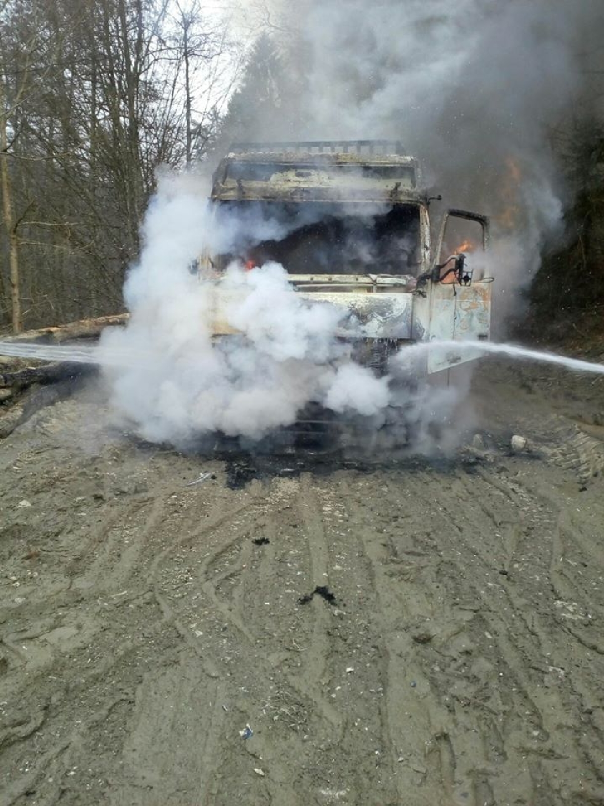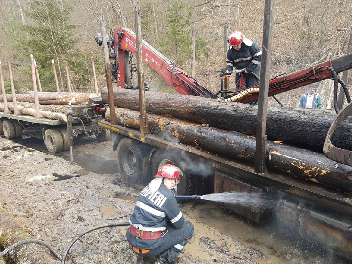 [FOTO] Camion în flăcări în mijlocul pădurii