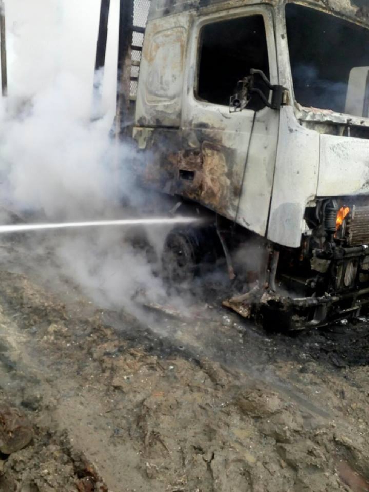 Pompierii au concluzionat că incendiul a izbucnit din cauza unui scurt circuit electric la sistemul de încălzire al camionului. Nu au fost persoane rănite.
