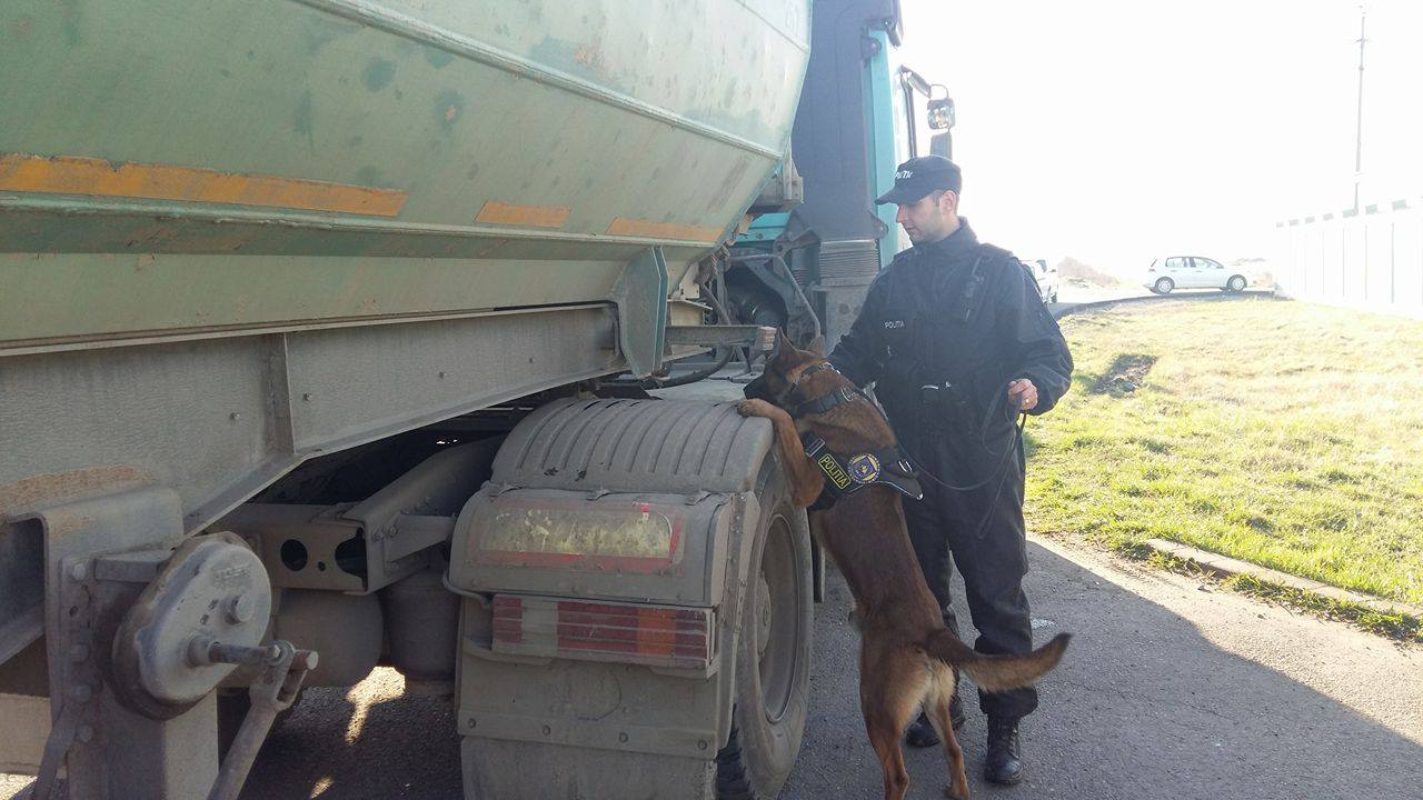 Astfel, câinii poliţişti, din rasele ciobănesc german, ciobănesc belgian și labrador, special antrenați, participă împreună cu conductorii lor alături de poliţişti, în desfăşurarea activităţilor specifice de supraveghere şi control al traficului rutier. Aportul echipelor canine este deosebit de important în verificarea autovehiculelor de mari demensiuni, destinate transportului rutier de mărfuri și persoane.