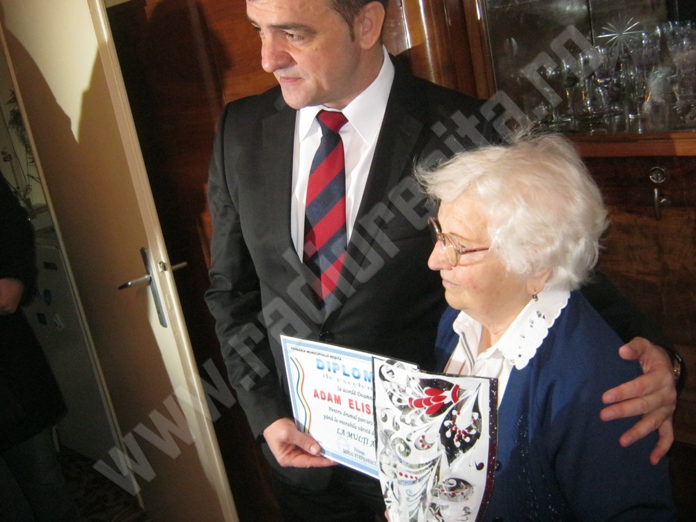 Reprezentanţii Serviciului Comunitar de Evidenţa Persoanelor din cadrul Primăriei municipiului Reşiţa au oferit astăzi nonagenarilor din localitate diplome de excelenţă şi un ajutor financiar de 250 de lei. S-au bucurat astfel de recunoştiinţa autorităţilor locale 12 persoane, dar şi familiile acestora. Vizita reprezentanţilor primăriei a fost primită cu bucurie de Elisabeta Adam de 90 de ani, originară din localitatea mureşană Sovata. Potrivit acesteia, a venit în Reşiţa din 1948, în vizită la o mătuşă şi a rămas în urbe. S-a căsătorit şi are două fete. Una este subinginer şi cealalta învăţător. A lucrat toată viaţa ca bobinator la Combinatul Siderurgic. Acum, la vârsta senectuţii este ajutată de copii, nepoţi şi vecini şi ajută cum şi cât poate pe toată lumea, a subliniat aceasta. În cadrul acţiunii sociale, primarul municipiului de pe Bârzava, Mihai Stepanescu a transmis tuturor vârstnicilor urări de sănătate şi tradiţionalul „La mulţi ani”.