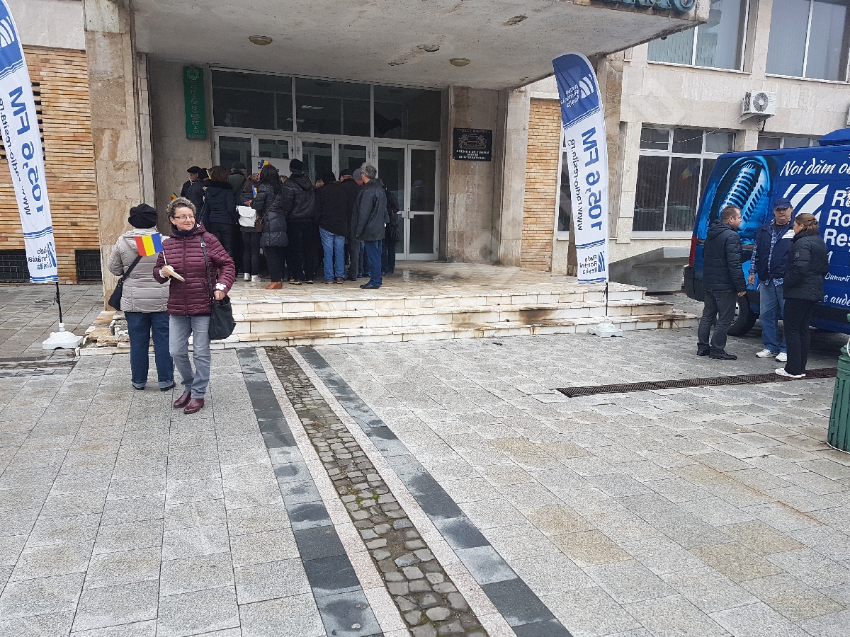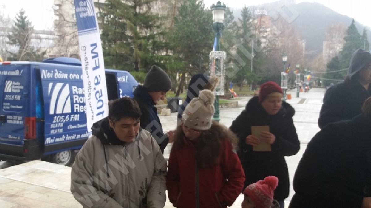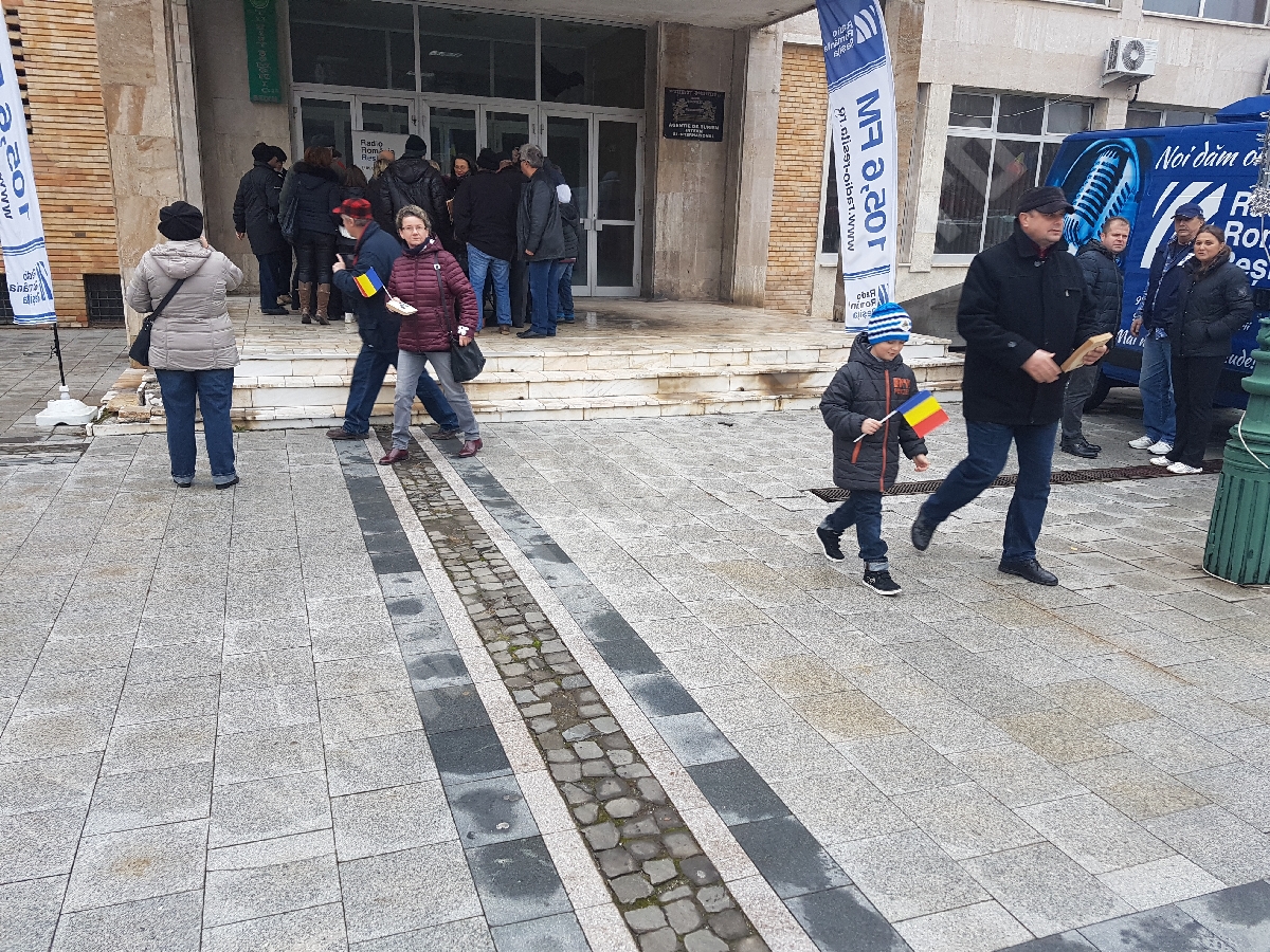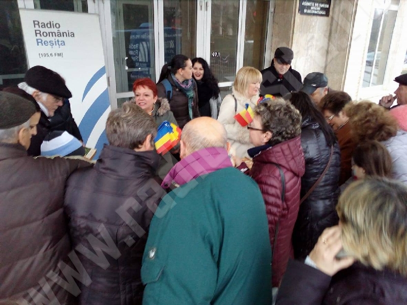 Din partea echipei Radio Reșița cei prezenți în Piața 1 Decembrie 1918 au primit și stegulețe cu tricolorul României.