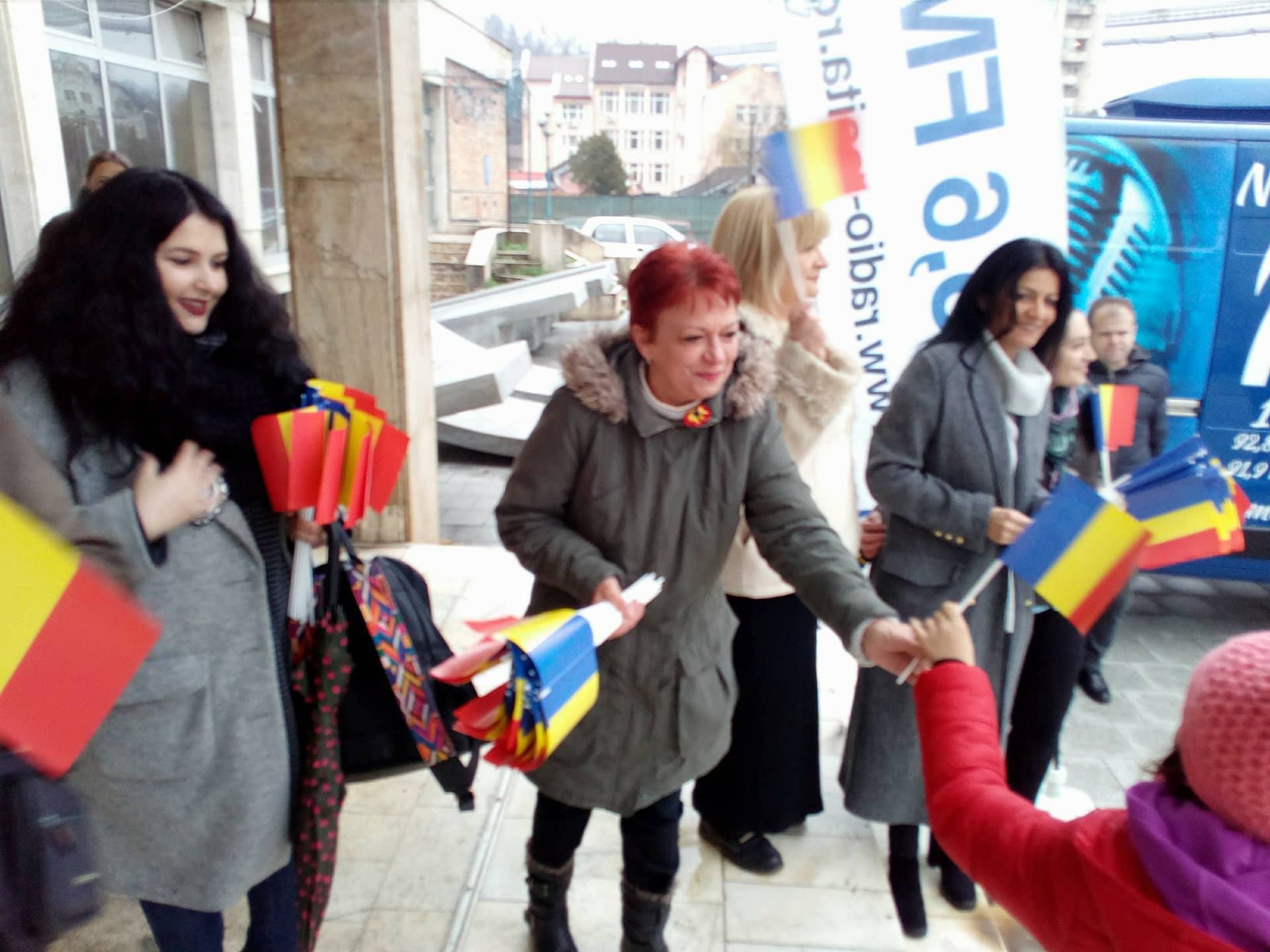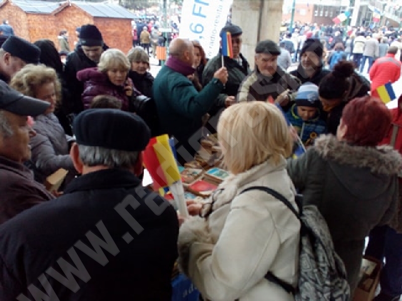 [FOTO] Citește românește! De Ziua Națională Radio Reșița a împărțit patrioților steguleţe şi cărți!