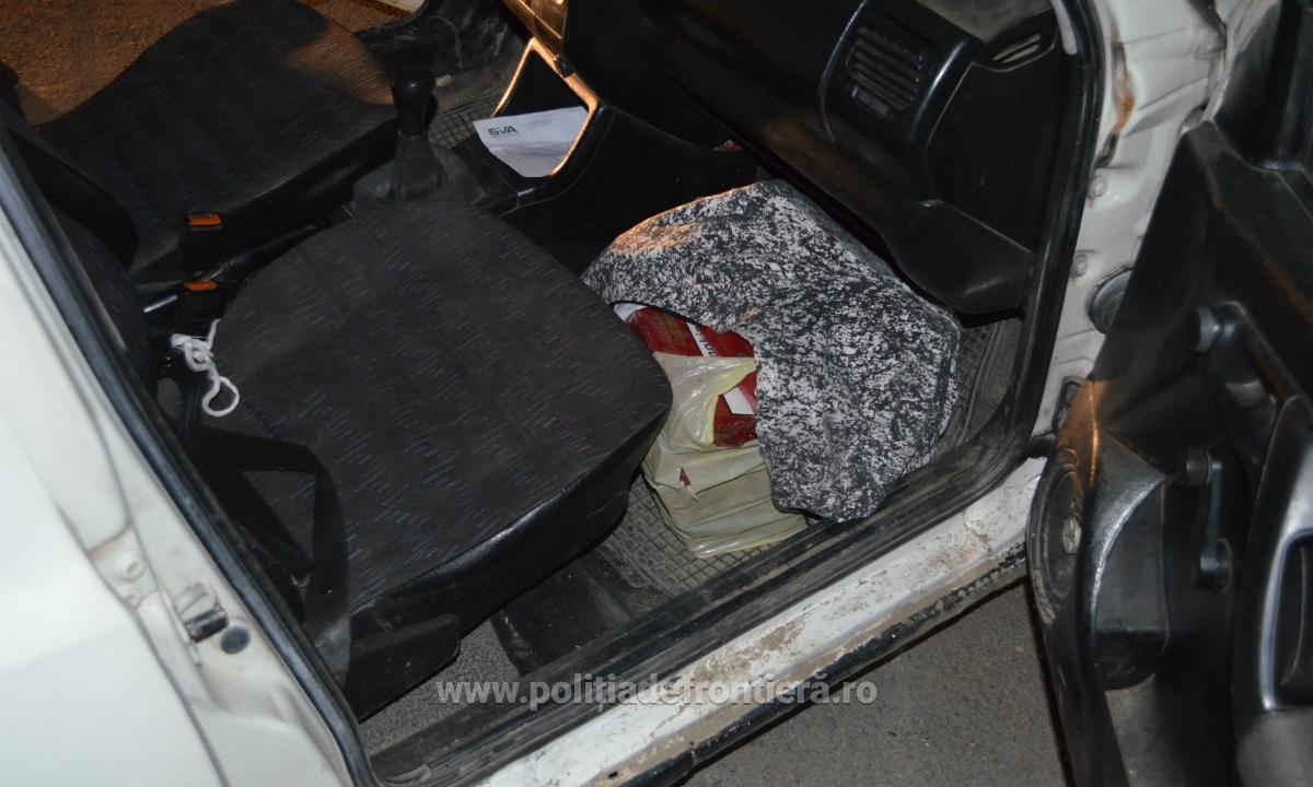 „În jurul orei 22.00, poliţiştii de frontieră din cadrul Sectorului Poliţiei de Frontieră Moldova-Veche, judeţul Caraş – Severin, aflaţi în misiune pe DN 57 A, pe raza localităţii de frontieră Pojejena, au oprit în trafic pentru control un autoturism marca Volkswagen Golf, despre al cărui şofer poliţiştii de frontieră aveau suspiciuni că ar fi implicat în acte de contrabandă. În urma controlului specific efectuat asupra autoturismului, condus de cetăţeanul român T.S., în vârstă de 27 de ani, cu domiciliul pe raza judeţului Caraş-Severin, poliţiştii de frontieră au descoperit, pe bancheta din spate a maşinii, cantitatea de 1.270 pachete de ţigări marca Marble, fără marcaje fiscale”, se arată în comunicatul Poliţiei de frontieră.