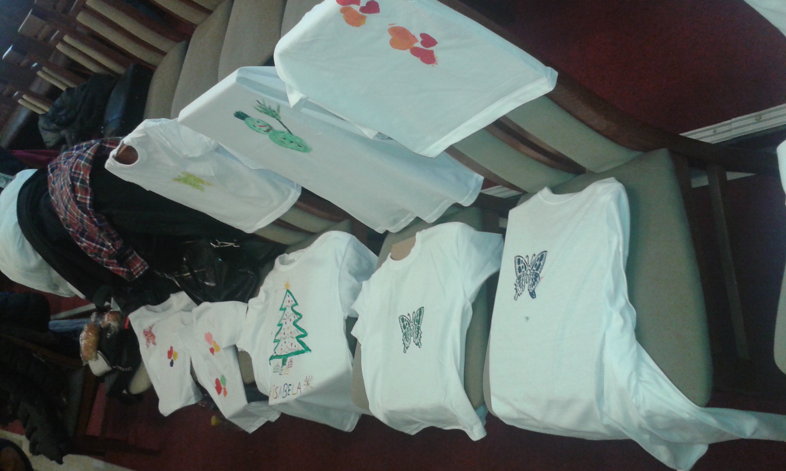 Am venit aici cu trupa mea, cu prietenul meu George şi cu colegii mei de la şcoală. Mă pregătesc să pictez un tricou cu inimioare şi am ales culoarea roşie.