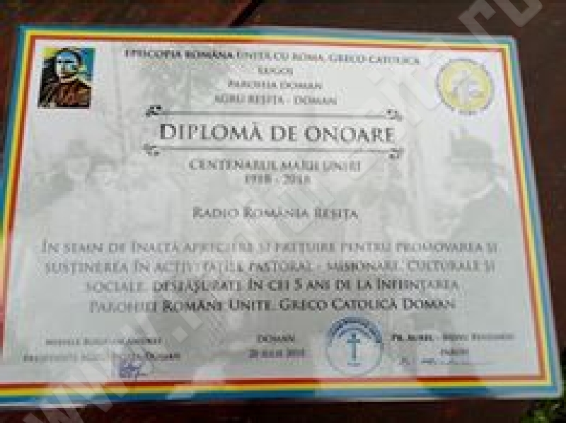 [FOTO] Diplomă de onoare pentru Radio Reşiţa pentru promovarea activităţílor pastoral-misionare, culturale şi sociale ale Bisericii greco-catolice
