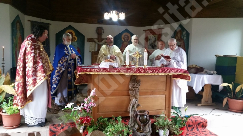 În prezenţa unei numeroase asistenţe, vicarul Episcopiei române unite cu Roma, greco-catolice de Lugoj, Monsignor Angelo-Narcis Pop, alături de Nicolae Tutaş – protopopul Reşiţei şi Preotul paroh Aurel-Silviu Bendariu, împreună cu mai mulţi confraţi în preoţie, a oficiat Sfânta Liturghie de hram, desfăşurată în aer liber la altarul de vară.