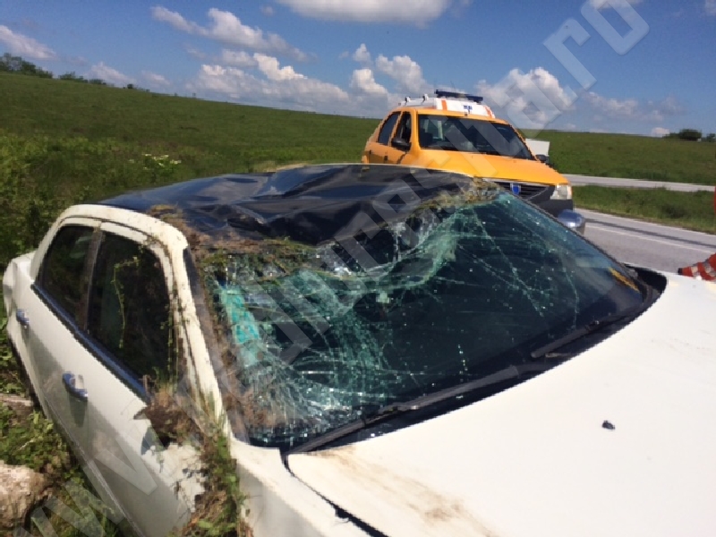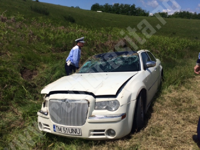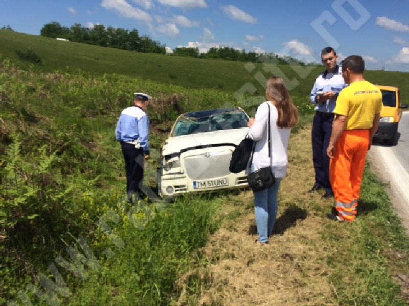 [FOTO] Accident pe DN 58. O tânără de 21 de ani a făcut praf un Chrysler