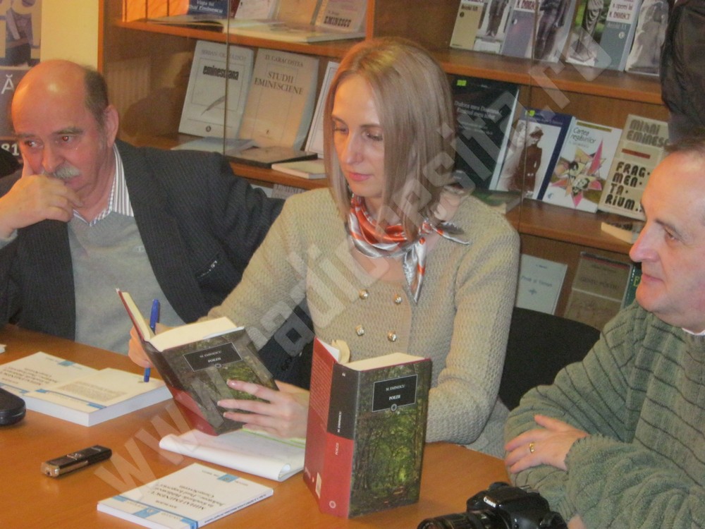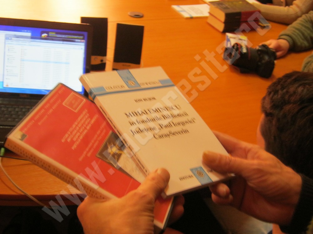 Astăzi, la Centrul de Carte “Banatica” al Bibliotecii Judeţene, în prezenţa elevilor de la liceele reşiţene a fost vernisată expoziţia de fotografie “Eminescu” realizată de bibliotecarul Erwin Josef Ţigla iar eminescologul reşiţean Gheorghe Jurma a susţinut comunicarea “Eminescu sau despre frumuseţea de neatins a lumii.” Atmosfera a fost întregită de un microrecital susţinut de folkistul reşiţean Alexandru Dorian Ianoş.