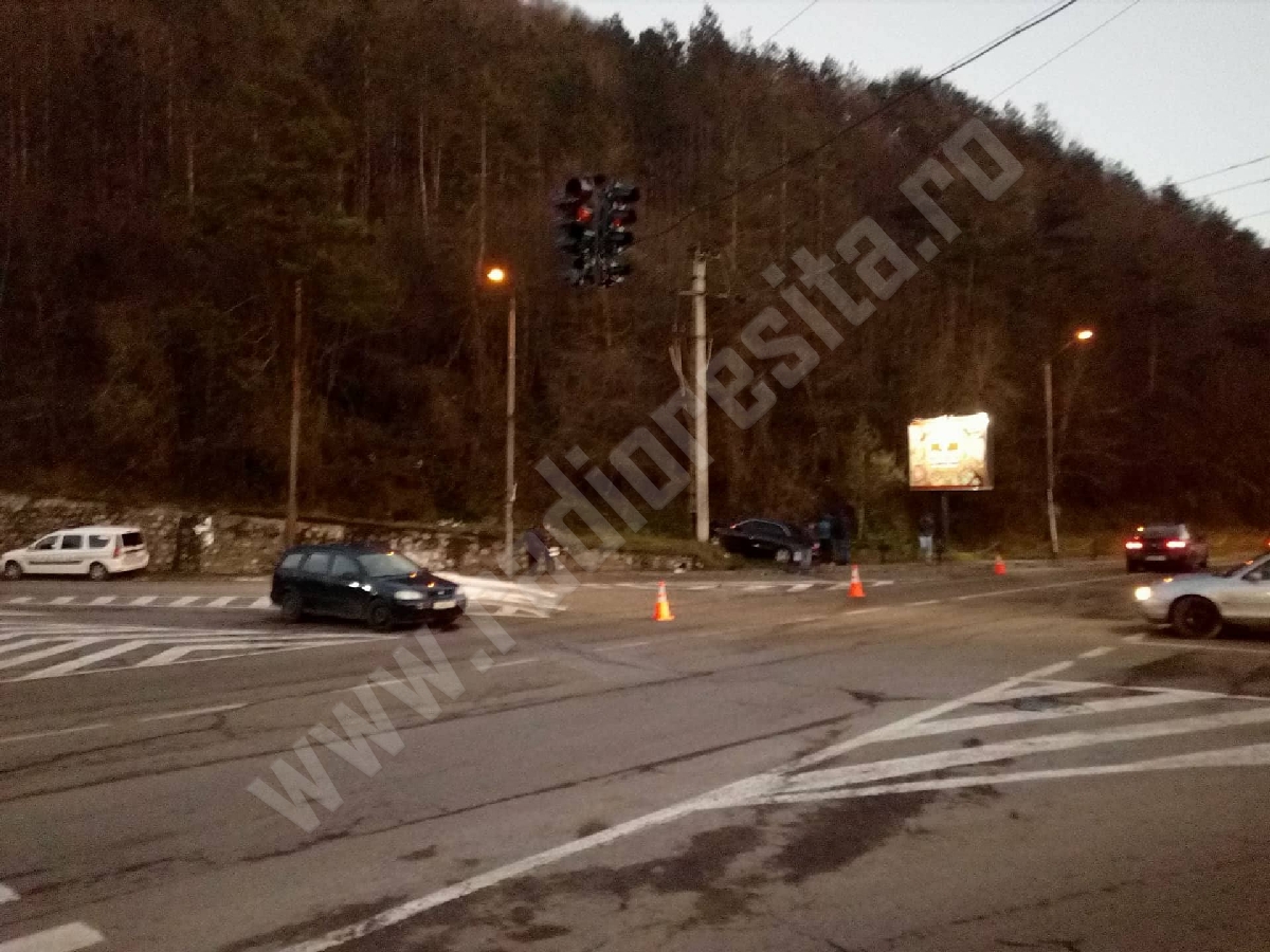 Totul a început în jurul orei 16.30, în intersecția semaforizată din zona centrală a orașului, dintre strada Ioan Corvin cu DN 58, mai exact la intersecția de la Trezorerie. Un bărbat de 47 de ani, aflat la volanului unui autoturism Opel, nu a acordat prioritate de trecere unui Mercedes condus de un tânăr de 26 de ani. Acesta din urmă, conducea pe un drum cu prioritate, iar în condițiile în care semaforul nu funcționa, avea dreptul să-și continue călătoria. Impactul a fost violent, iar Mercedes-ul a fost proiectat într-un stâlp de pe marginea drumului. În urma coliziunii, două femei, pasagere în Opel, au avut nevoie de îngrijiri medicale.