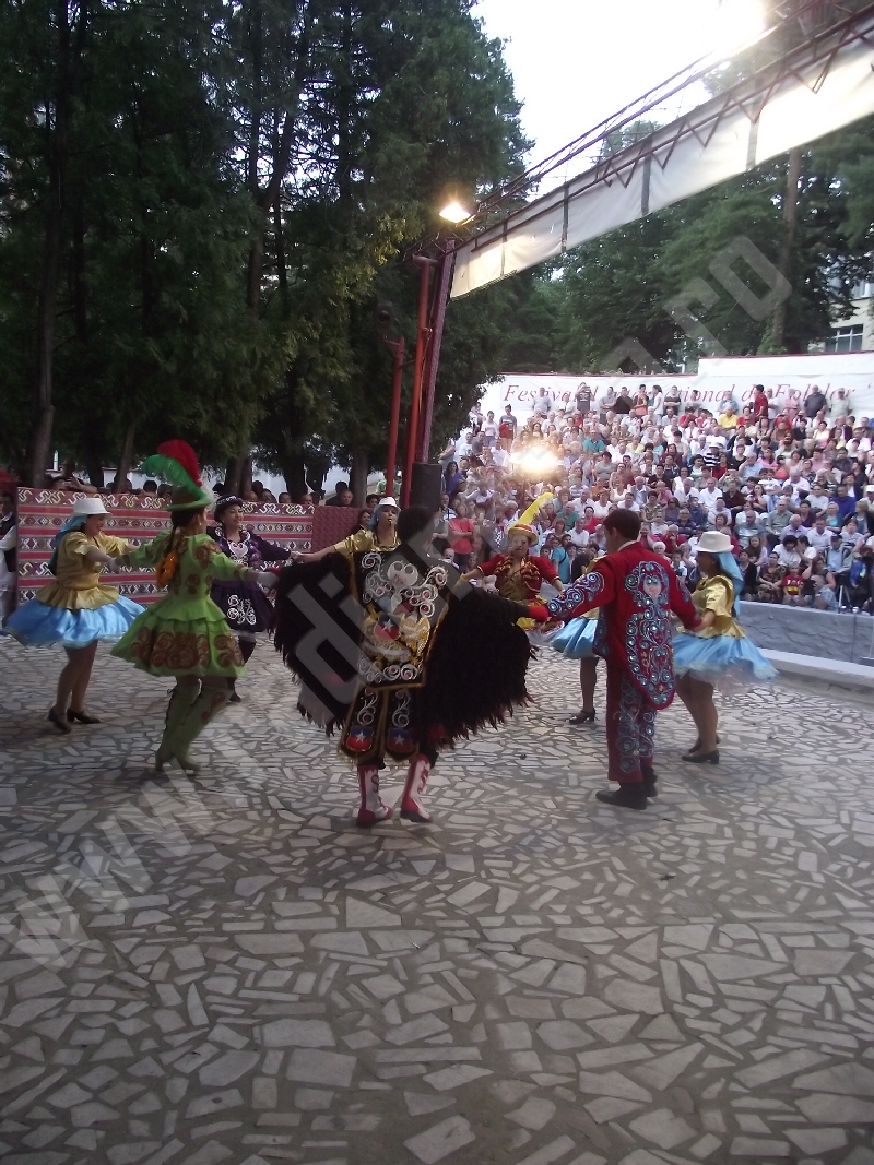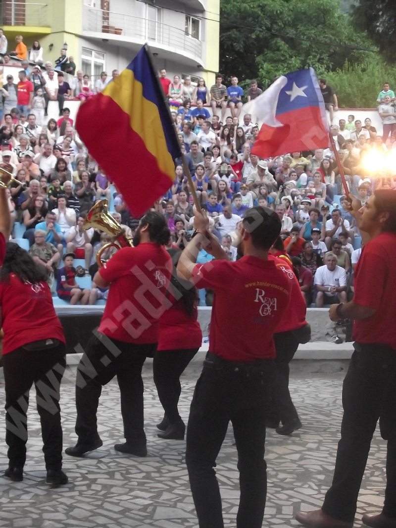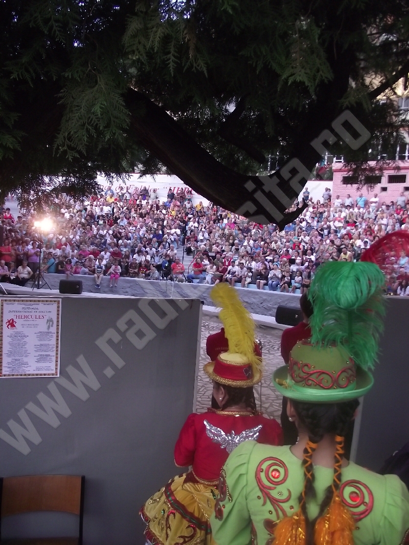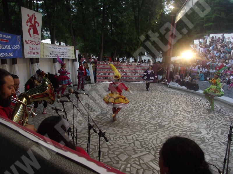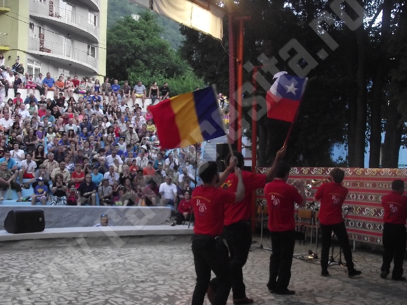 Spectacolul de aseară a fost deschis de ansamblul ZESTREA GUGULANILOR din Caransebeş şi soliştii acestui ansamblu, care au încântat publicul cu dansuri din zona municipiului de pe Tmiş şi Sebeş. Desigur, foarte aşteptate sunt momentele artistice ale ansamblurilor din străinătate, a căror coregrafie exotică din statele Americii Centrale şi Americii de Sud fac deliciul pulicului. În cadrul galei de aseară, primii au urcat pe scenă reprezentanţii FUNDACION COLUMBIA FOLKLORE, care au adus în atenţie tradiţiile de pe coasta columbiană a Pacificului, dar şi din interiorul ţării, prezentând un fragment din regiunea montană a acestei ţări sud-americane, precum şi EL PAMBUCO – un dans reprezentativ pentru folclorul columbian. Aprecieri unanime din partea celor prezenţi au primit şi dansatorii de la REY CURRE din Costa Rica, reprezentanţii regiunii Puntarenas, aceştia etalând în programul lor identitatea statului Costa Rica. Cu aplauze a fost răsplătit şi efortul artistic al dansatorilor ansamblului BANDA RENACER din Chile, care au adus dansul şi muzica din nordul acestui stat sud-american, prin dansurile LA TIRANA – o sărbătoare dedicată Fecioarei de la Tirana şi ALTIPLANICO. Seara a fost încheiată cu foclorul bănăţean susţinut de Ansamblul VERMEŞANA din Vermeş.