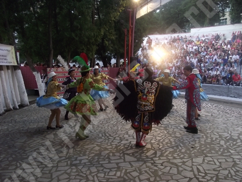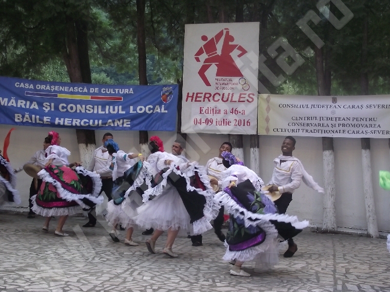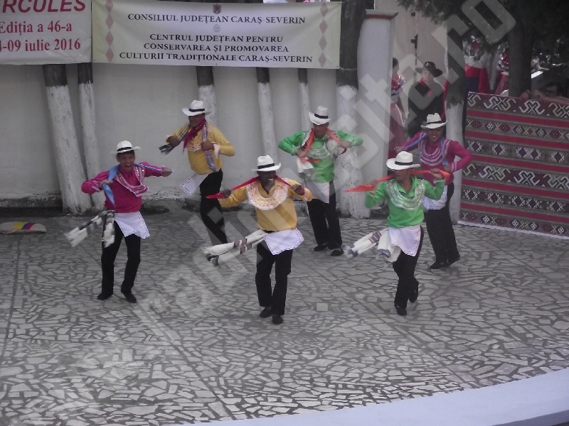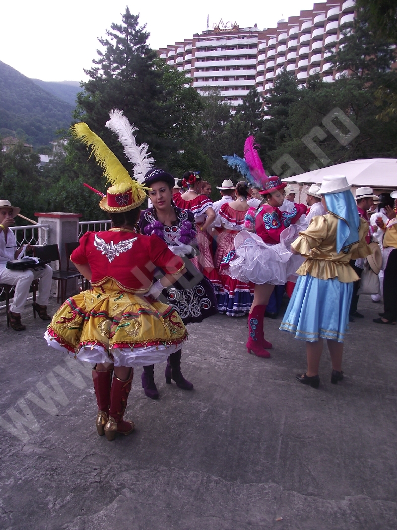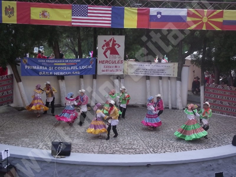 Spectacolul de aseară a fost deschis de ansamblul ZESTREA GUGULANILOR din Caransebeş şi soliştii acestui ansamblu, care au încântat publicul cu dansuri din zona municipiului de pe Tmiş şi Sebeş. Desigur, foarte aşteptate sunt momentele artistice ale ansamblurilor din străinătate, a căror coregrafie exotică din statele Americii Centrale şi Americii de Sud fac deliciul pulicului. În cadrul galei de aseară, primii au urcat pe scenă reprezentanţii FUNDACION COLUMBIA FOLKLORE, care au adus în atenţie tradiţiile de pe coasta columbiană a Pacificului, dar şi din interiorul ţării, prezentând un fragment din regiunea montană a acestei ţări sud-americane, precum şi EL PAMBUCO – un dans reprezentativ pentru folclorul columbian. Aprecieri unanime din partea celor prezenţi au primit şi dansatorii de la REY CURRE din Costa Rica, reprezentanţii regiunii Puntarenas, aceştia etalând în programul lor identitatea statului Costa Rica. Cu aplauze a fost răsplătit şi efortul artistic al dansatorilor ansamblului BANDA RENACER din Chile, care au adus dansul şi muzica din nordul acestui stat sud-american, prin dansurile LA TIRANA – o sărbătoare dedicată Fecioarei de la Tirana şi ALTIPLANICO. Seara a fost încheiată cu foclorul bănăţean susţinut de Ansamblul VERMEŞANA din Vermeş.
