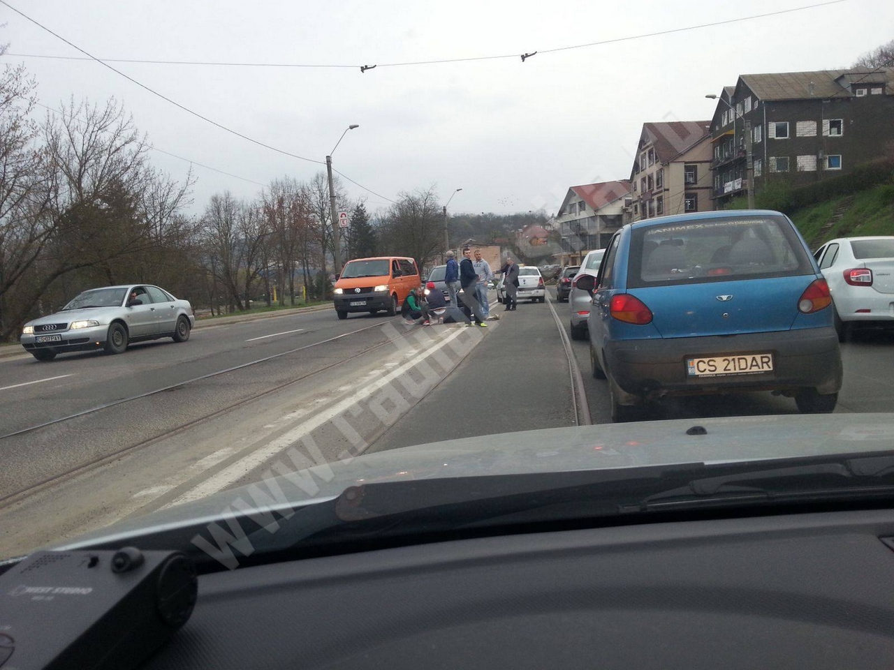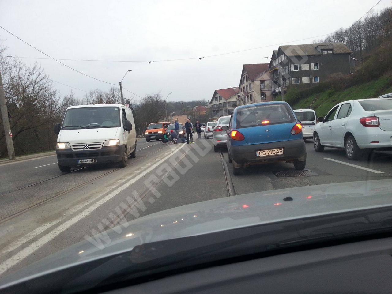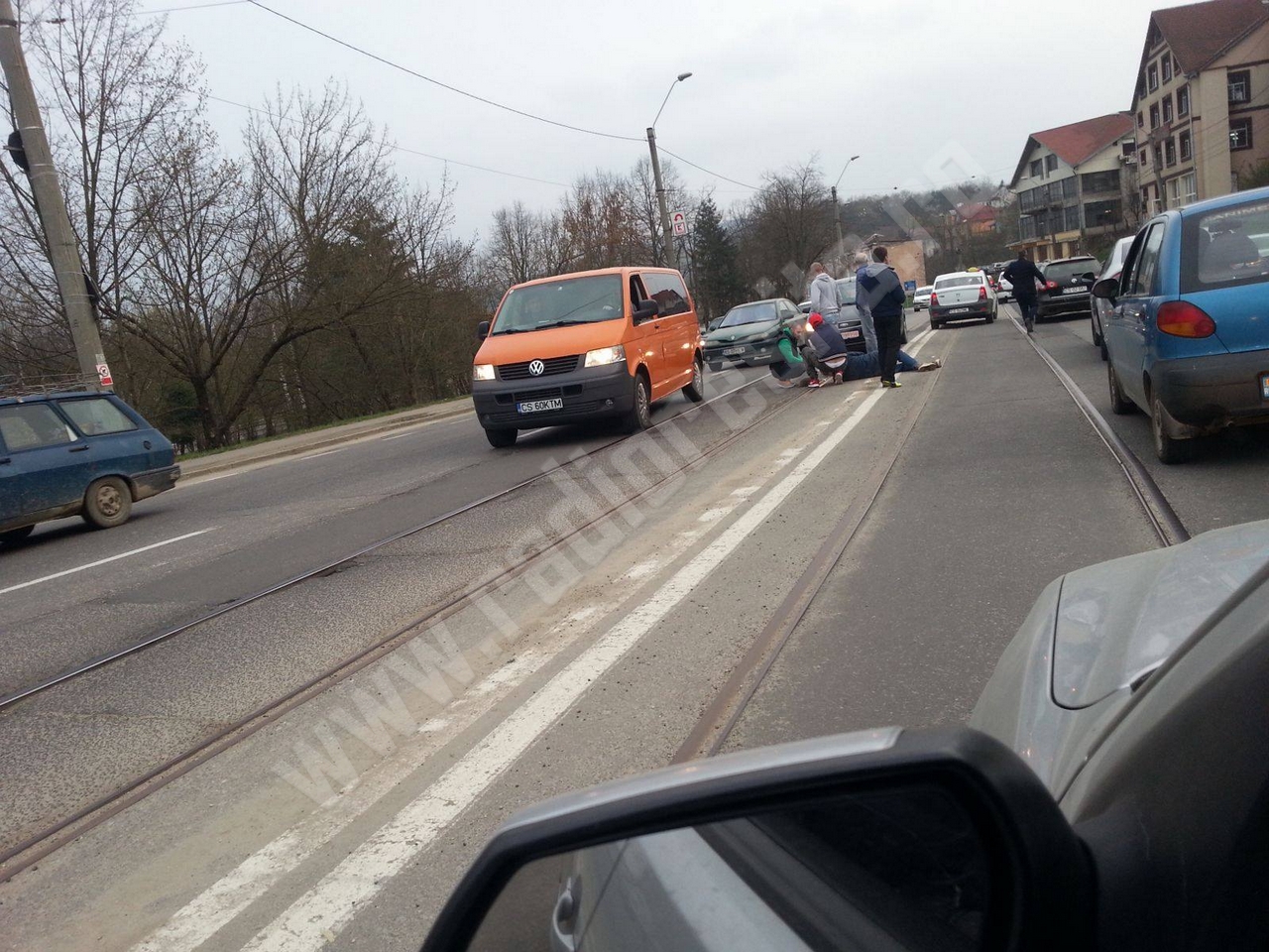 [FOTO] Grav accident de circulaţie în zona Triaj din Reşiţa. Un biciclist neatent a fost lovit de un autoturism
