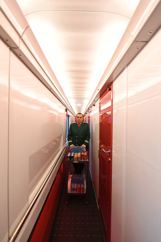 [FOTO] Greu de crezut, dar adevărat: Un tren de lux, cu duşuri şi servire ca în avion circulă în vestul ţării