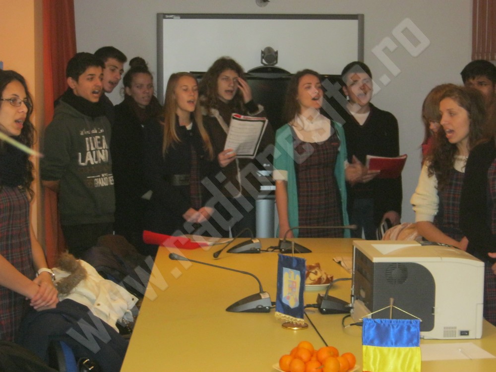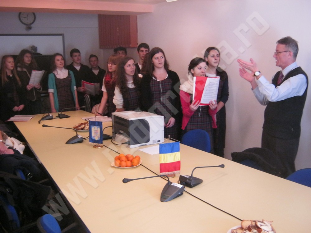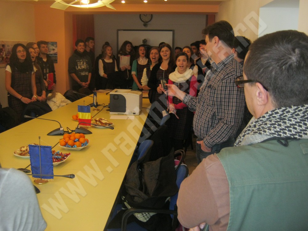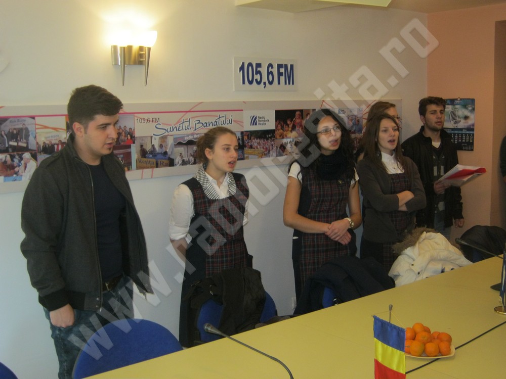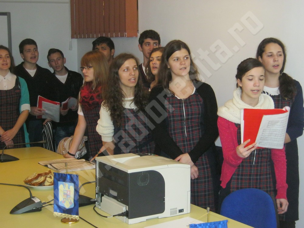 Pentru a întreţine vie atmosfera de dinaintea Crăciunului un nou grup de colindători a trecut astăzi pragul Radio România Reşiţa. Este vorba de corul de copii şi tineri „Armonia” al Liceului Teologic Baptist din municipiul de pe Bârzava. Colinde precum „O ce veste minunată”, „Deschide uşa creştine”, „Ne daţi ori nu ne daţi” sau tradiţionalul „La mulţi ani” au răsunat pe holurile şi încăperile instituţiei. Este vorba de un grup de peste 20 de tineri liceeni care sub îndrumarea profesorului Cornel Todea, dirijorul corului, au apropiat Crăciunul, sărbătoarea naşterii Mântuitorului Isus Hristos, în ieslea Betleemului, de inimile redactorilor şi reporterilor reşiţeni. Vizita lor la Radio România Reşiţa a fost recompensată cu cozonaci, bomboane şi fructe. Periplul colindătorilor va continua la instituţiile reşiţene până în ajunul sărbătorilor.