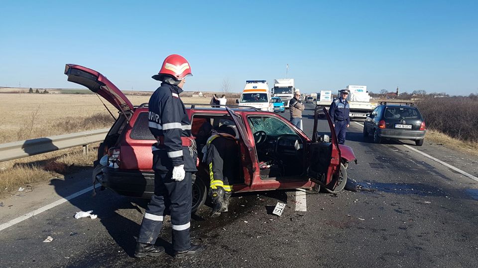 La locul intervenţiei s-au deplasat, din partea Detaşamentului I Pompieri Timişoara, două autospeciale dotate cu modul de descarcerare, un echipaj SMURD, un ofiţer, 14 subofiţeri, o ambulanţă SAJ şi echipaje de poliţie. În autoturismul implicat în accident se aflau trei persoane de sex masculin, dintre care două au fost preluate de echipajele medicale, conştiente, în stare stabilă, pentru a fi transportate la spital.