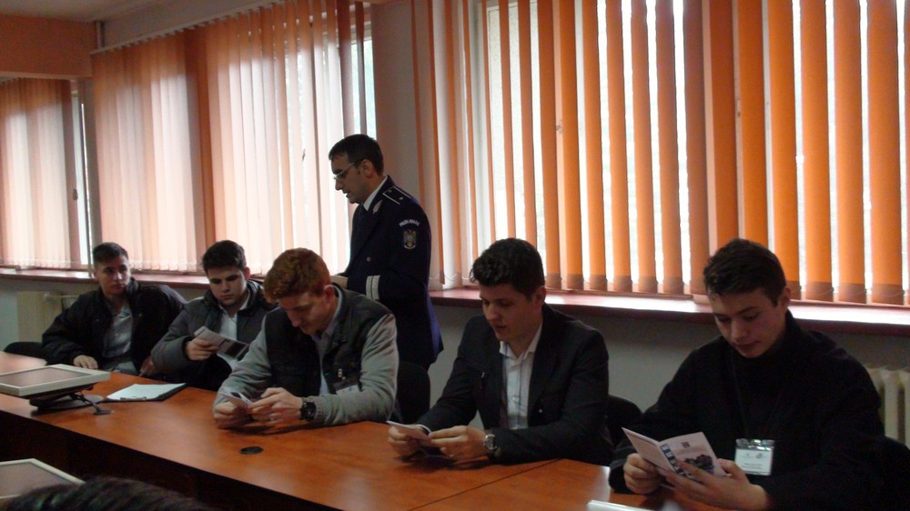 La sediul Inspectoratului de Poliţie Judeţean Caraş-Severin au fost prezenţi 13 elevi din clasele a XI-a de la Liceul Teoretic „Traian Vuia” din Reşiţa care au participat la activităţi alături de specialişti ai Serviciului Criminalistic, de agenţi de siguranţă publică şi poliţişti rutieri de la Poliţia Municipiului Reşiţa. Tinerii au fost „pe teren”, în misiuni de patrulare alături de poliţiştii de ordine publică şi poliţiştii rutieri, dar au avut ocazia să observe şi ce înseamnă munca de birou respectiv cercetarea ştiinţifică a probelor rezultate în urma cercetării locului faptei.