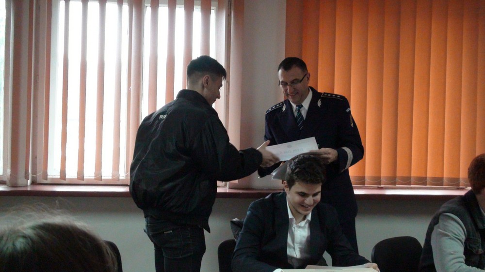 Elevii au primit materiale informative referitoare la unităţile de învăţământ ale Ministerului Afacerilor Interne, dar şi condiţii legale şi criterii specifice de participare la concursurile de admitere, respectiv acte necesare pentru dosarul de candidat. La finalizarea programului, pentru a marca faptul că timp de o zi au desfăşurat activităţi alături de poliţişti, elevii au primit diplome prin care li s-a acordat titlul de „Poliţist pentru o zi”.