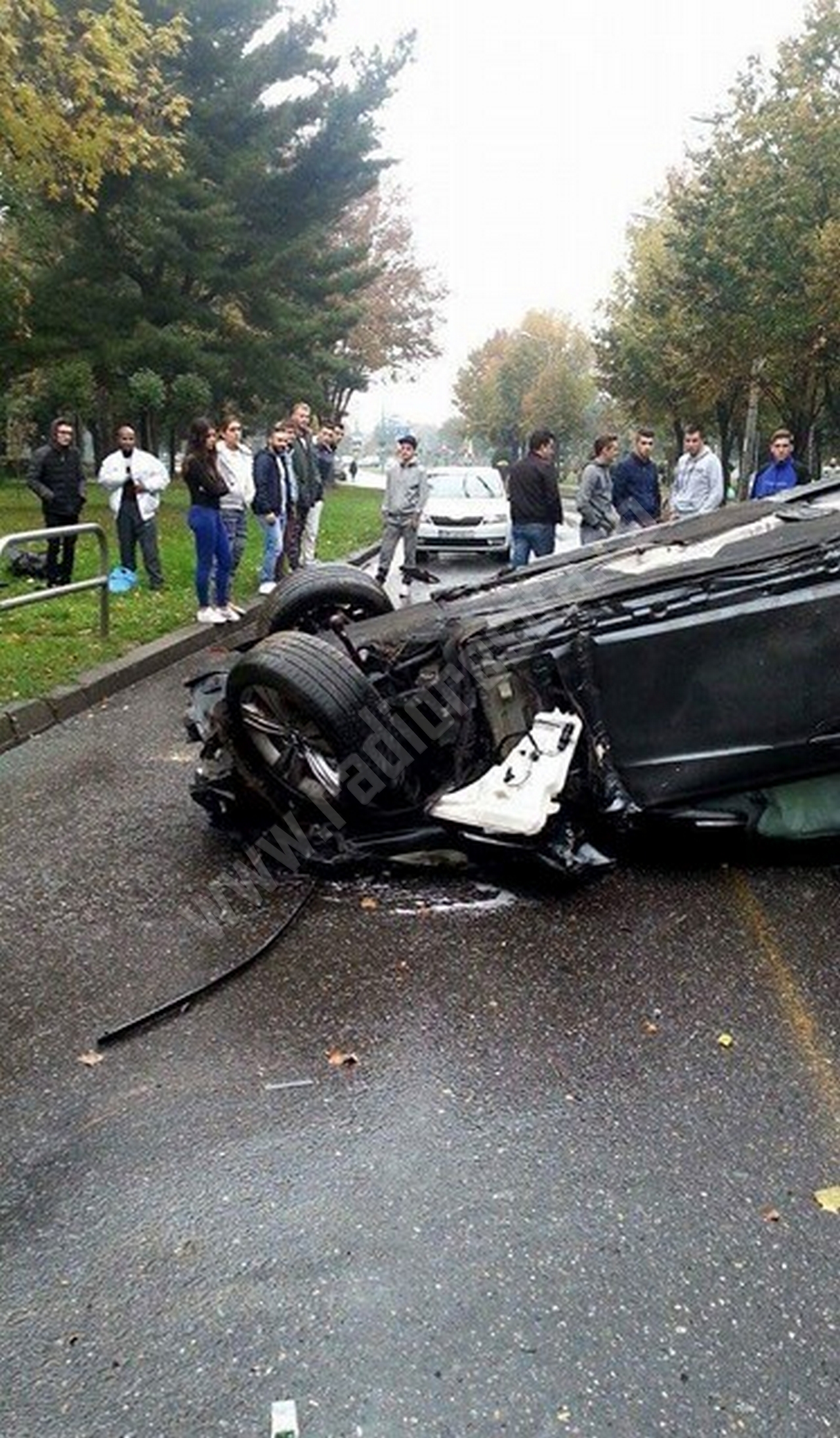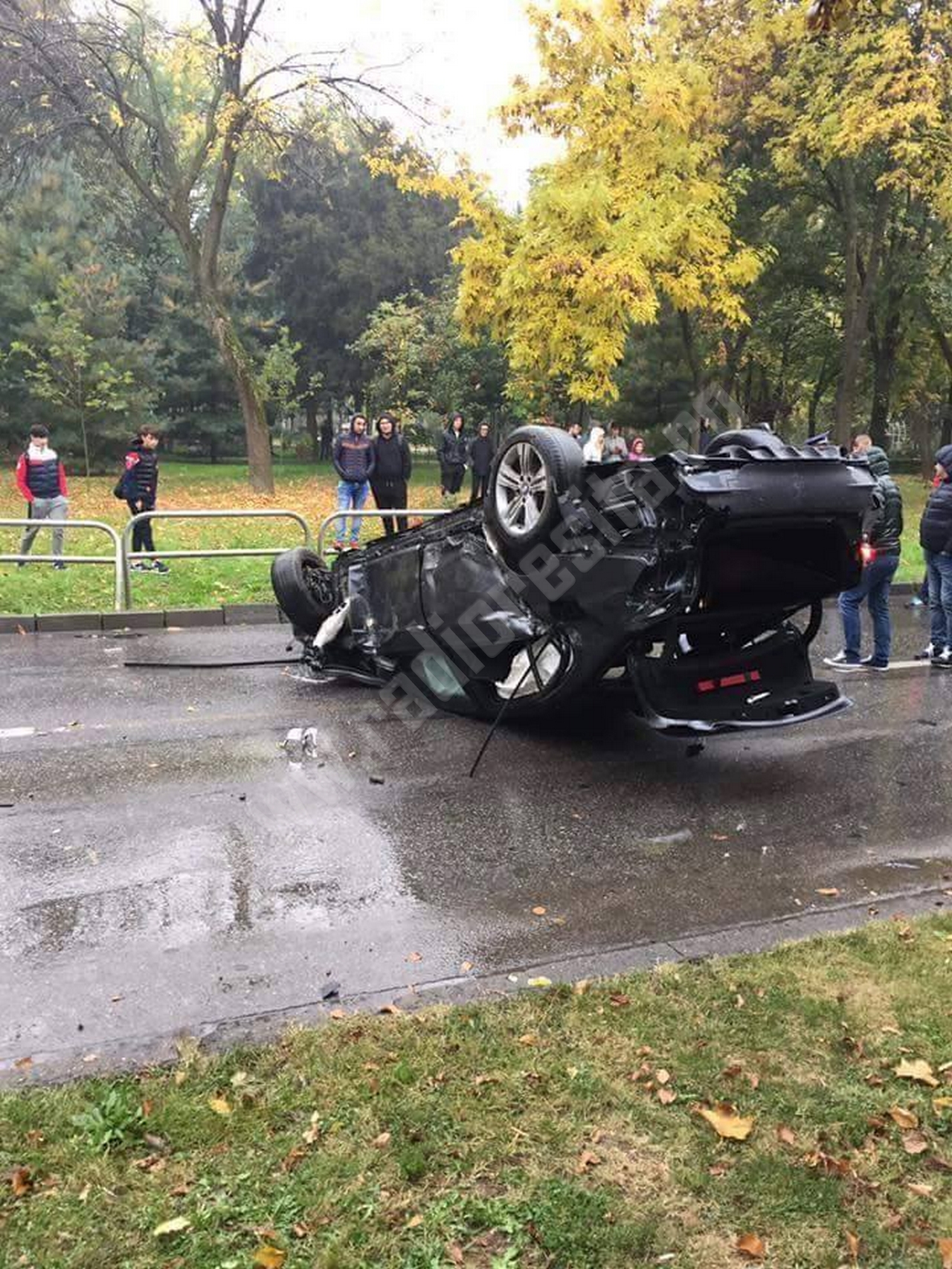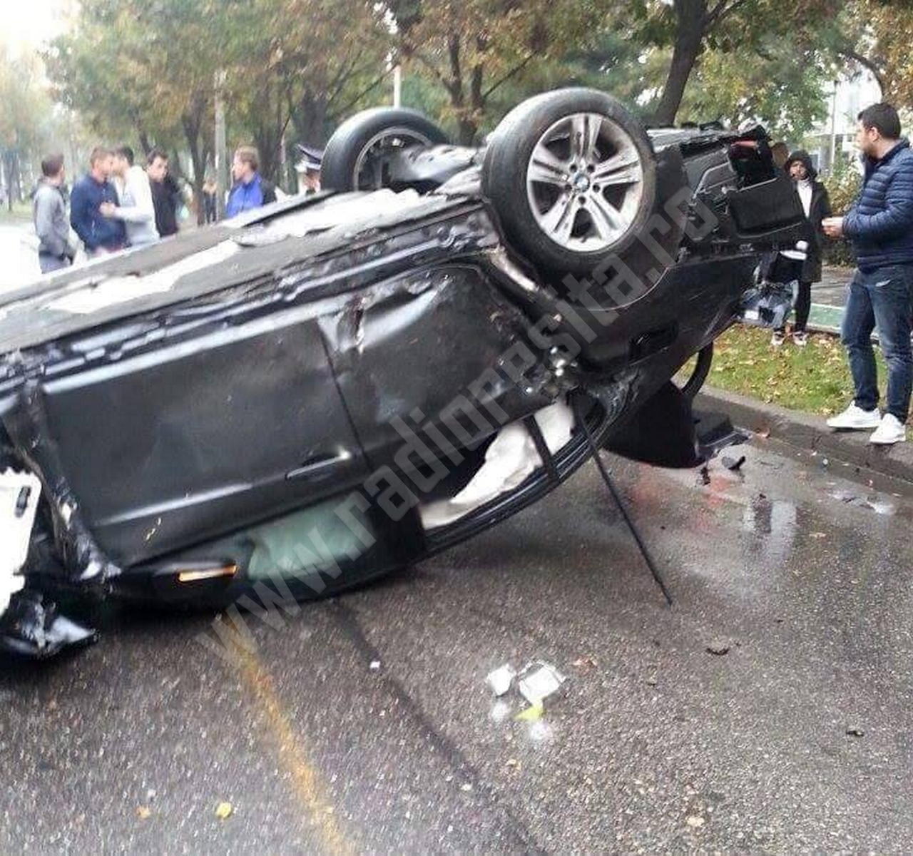 Şoferul unui autoturism BMW a pierdut controlul volanului, iar maşina a derapat, după care s-a lovit de balustradele de metal de pe marginea carosabilului şi s-a răsturnat.