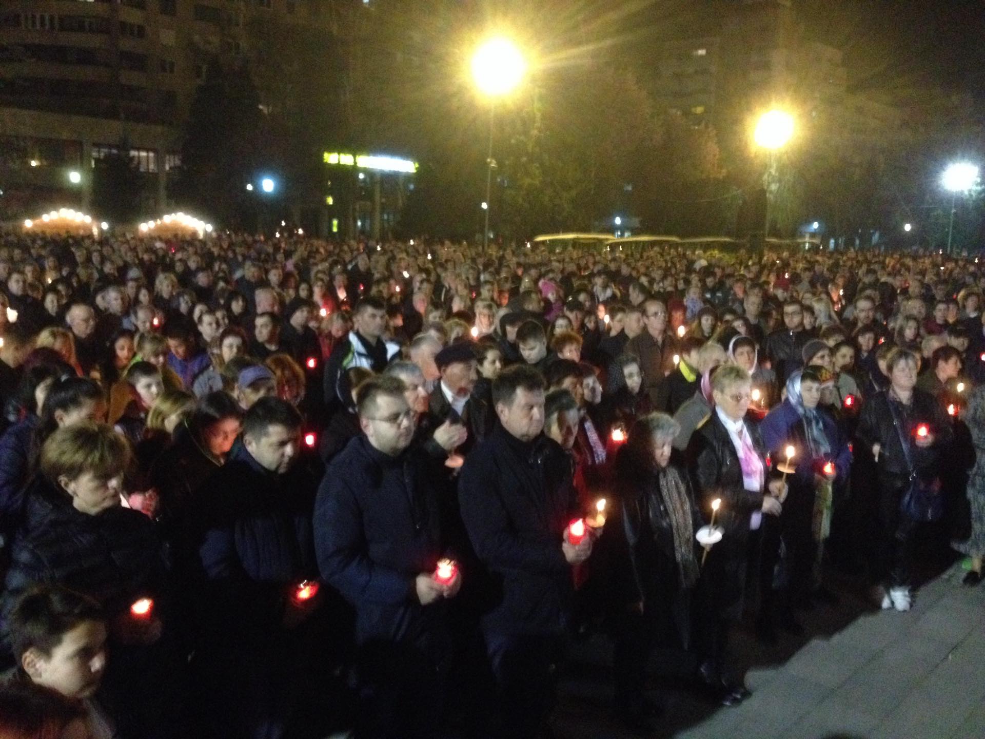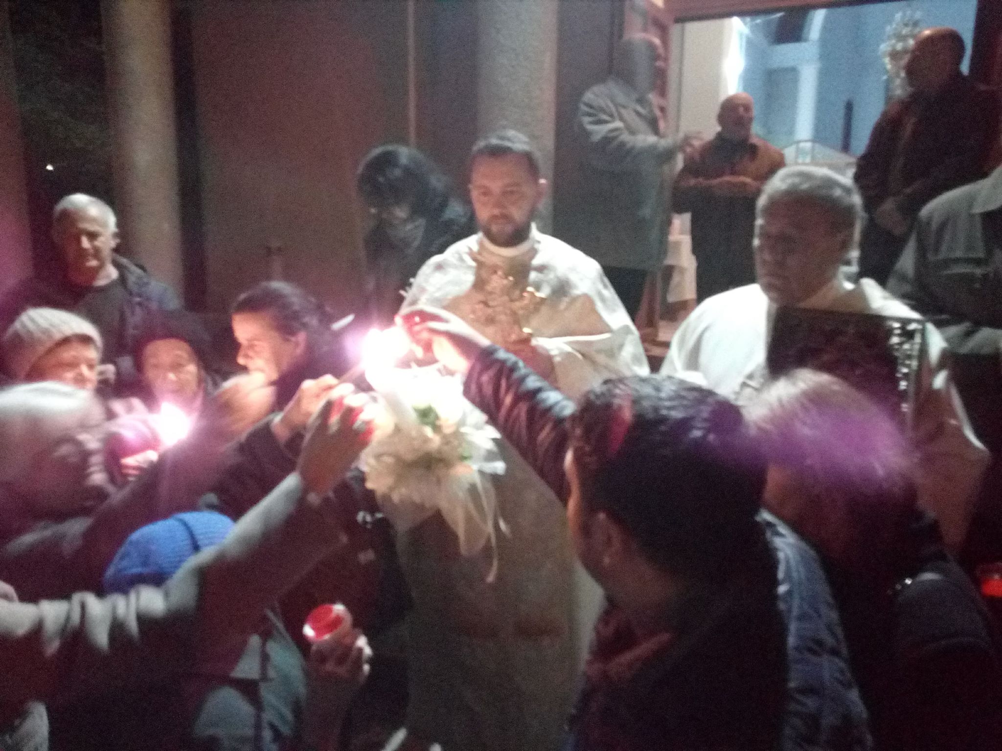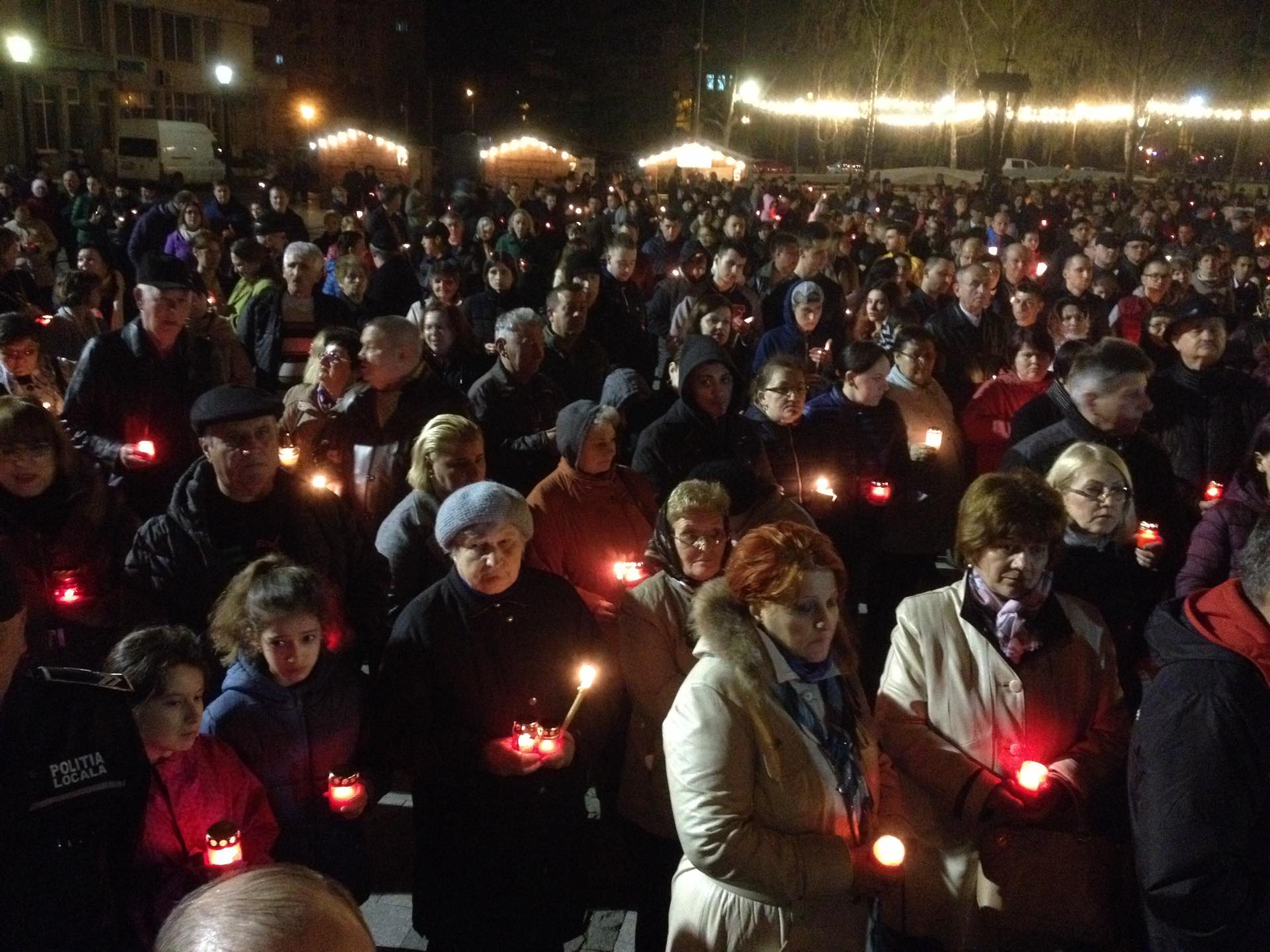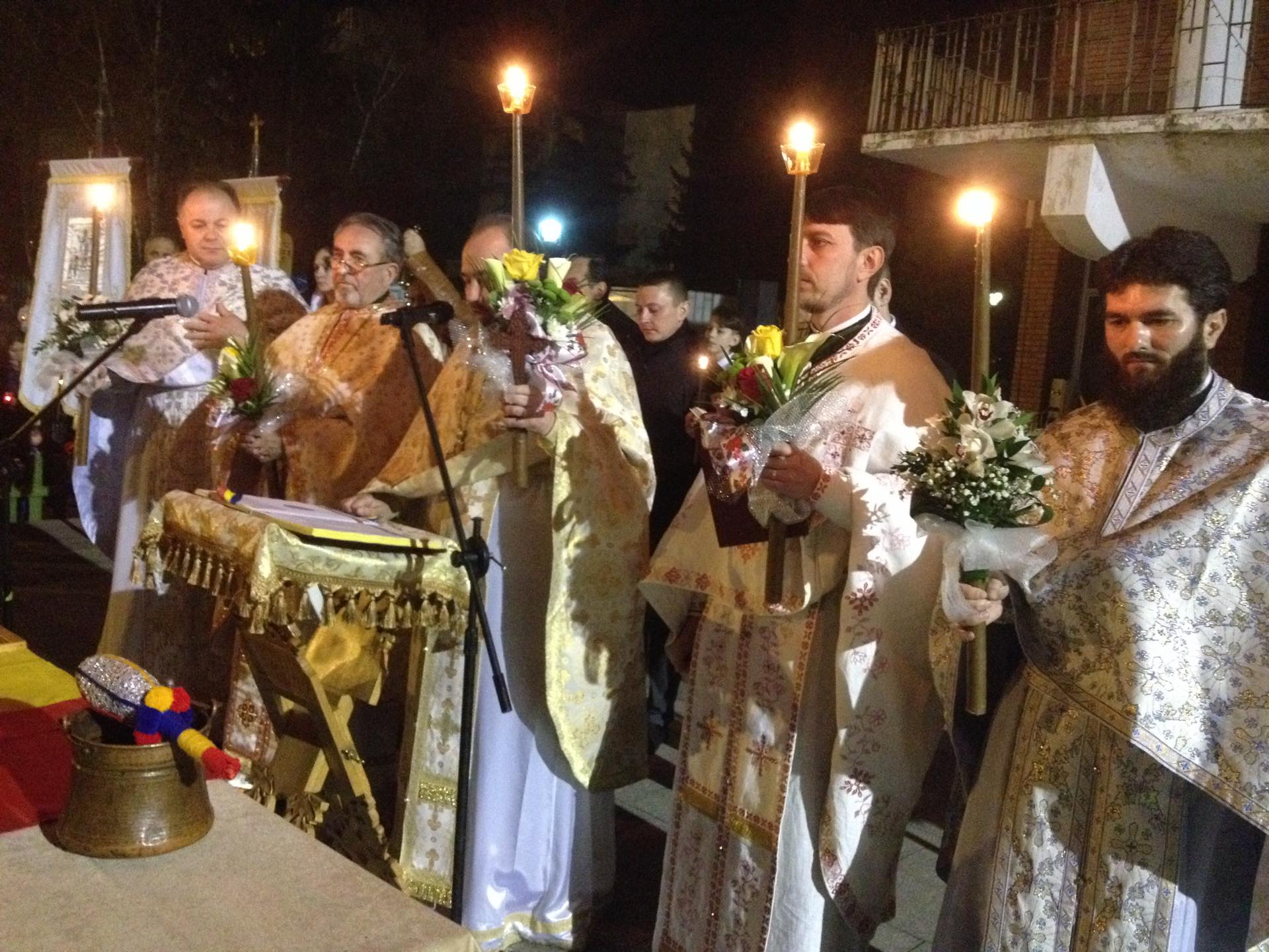 În toate lăcaşele de cult preoţii au oficiat slujbele, dar anul acesta, în premieră, Părintele Protopop al Reşiţei, Gheorghe Şuveţi, alături de un sobor de preoţi, a oficiat Slujba de Înviere în Centrul Civic, unde câteva mii de oameni, printre care foarte mulţi tineri şi copii, au venit să ia Lumină împreună şi cu Ioan Popa primarul municipiului de pe Bârzava.