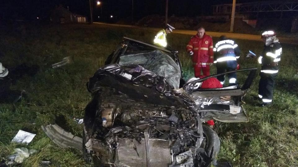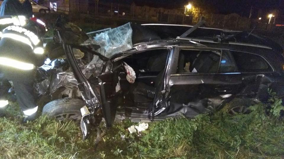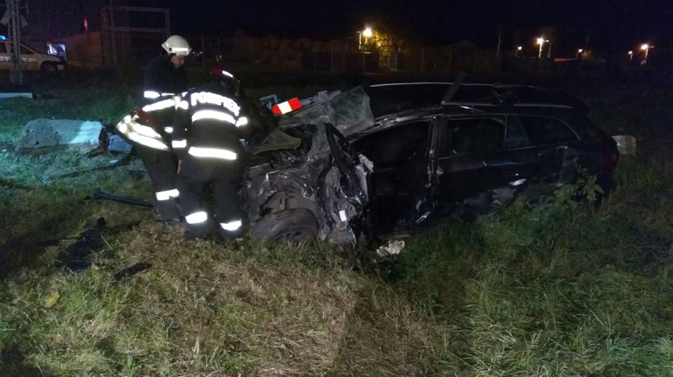 [FOTO] Maşină, izbită în plin de tren şi târâtă 200 de metri pe calea ferată! Două persoane sunt în stare gravă!