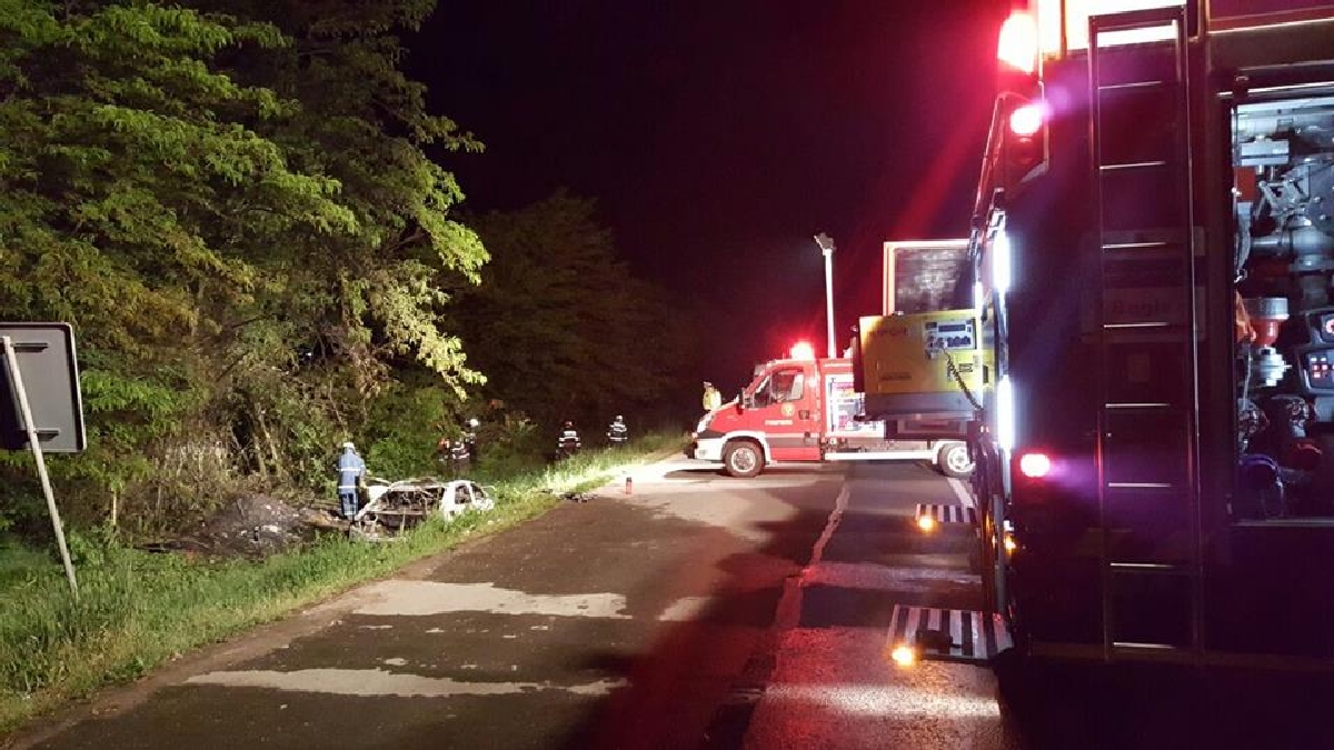 „La locul intervenției s-a deplasat din cadrul Detașamentului I Pompieri Timișoara o autospecială de lucru cu apă și spumă, o ambulanță SMURD, un ofițer și opt subofițeri. S-a constatat că, de fapt era vorba despre un accident rutier, în care a fost implicat un autoturism Mercedes, care în urma impactului a luat foc. În autoturism se afla o persoană de sex masculin, în vârstă de 37 de ani, carbonizată”.