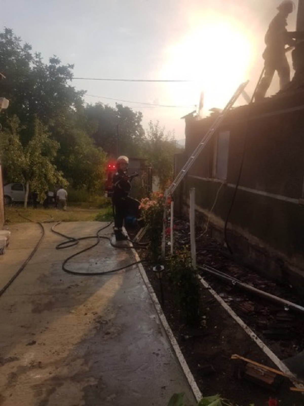 În numai câteva minute, incendiul s-a propagat la bunurile materiale din bucătărie, cameră, hol și la acoperișul casei, care a ars pe o suprafață de 60 mp.