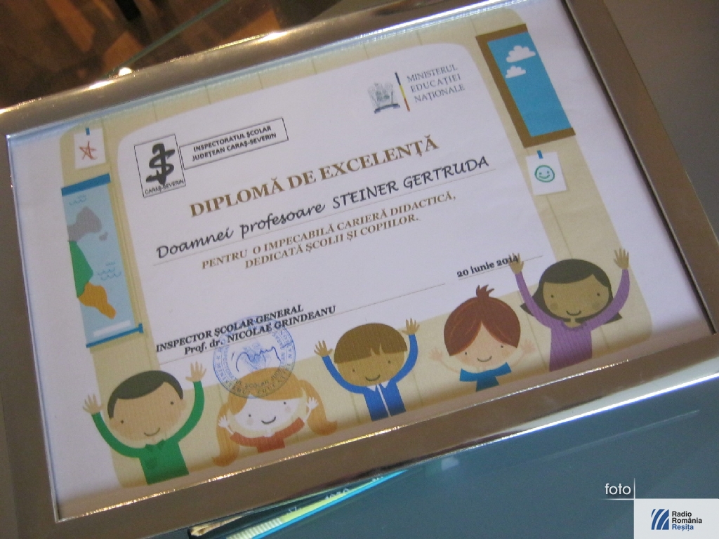 În cadrul evenimentului festiv, prof. Gertrude Steiner de la Colegiul Naţional „Traian Lalescu” din municipiul Reşiţa şi-a luat larevedere atât de la elevi, cât şi de la colegii profesori, după o lungă şi frumoasă activitate didactică depusă la catedră.
