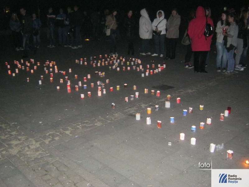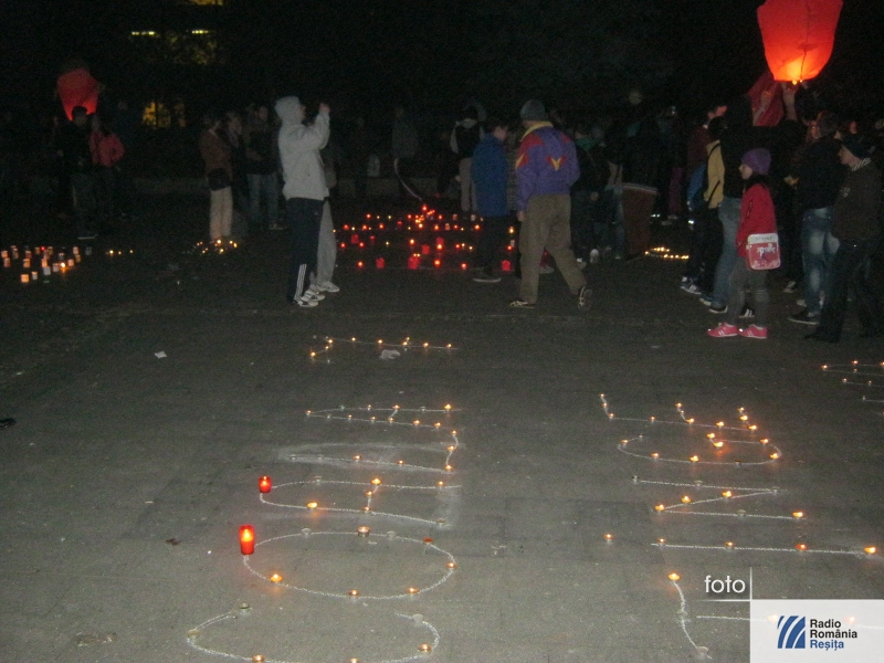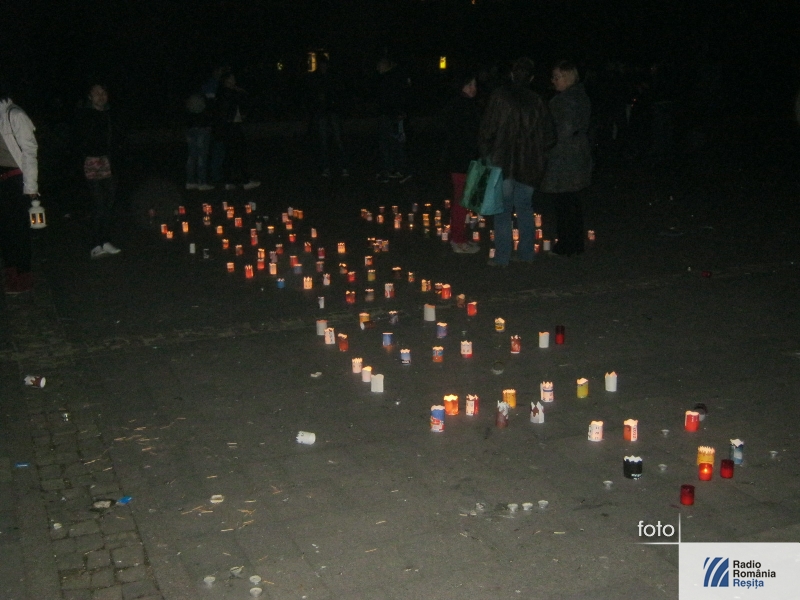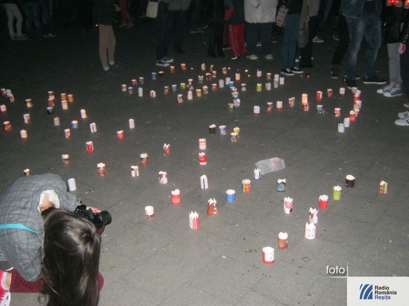 Centrul Reşiţei a strălucit datorită sutelor de lumănări şi candele aşezate în faţa fântănii cinetice şi pe alei.
