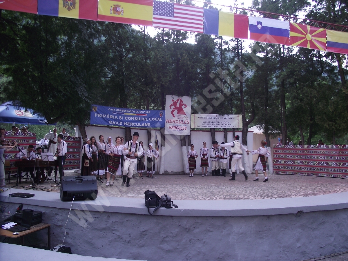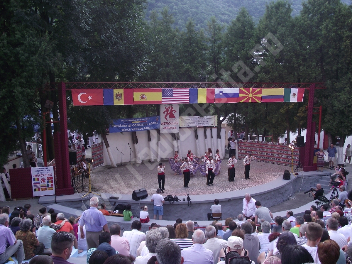 Festivalul internaţional de folclor HERCULES a continuat miercuri seara, 8 iulie, pe scena Teatrului de Vară din Parcul Vicol al staţiunii Băile Herculane cu cel de-al treilea spectacol, în prezenţa unui public numeros, care a umplut din nou gradenele Teatrului de Vară, dornic să vadă la lucru ansamblurile participante.