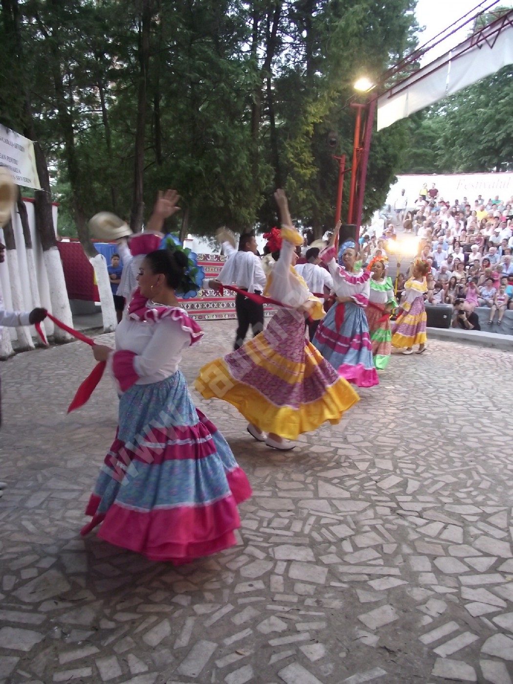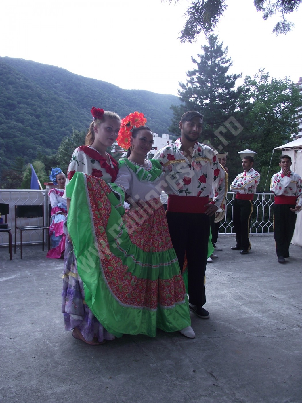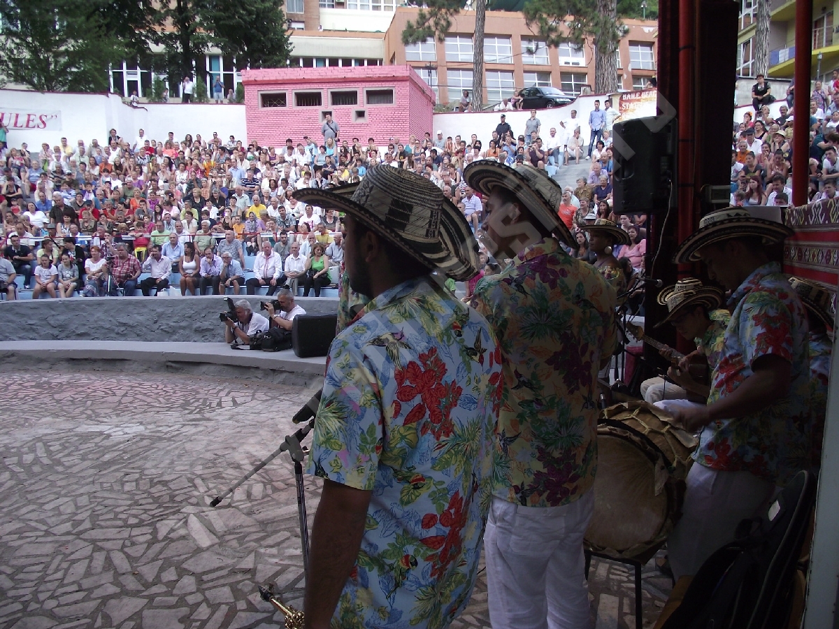 Pe toată durata programului, în culise a fost o mare forfotă, creată nu doar de ansamblurile care se pregăteau să urce pe scenă, ci şi de cei mai tineri dintre spectatori care doreau să se fotografieze cu artiştii, cele mai solicitate fiind dansatoarele columbiene! Amatorii de suveniruri columbiene au avut, dealtfel, prilejul să le achiziţioneze chiar de la membrii ansamblului, de la standul amenajat în incinta Teatrului de Vară, în apropierea scenei, iar doritorii nu au fost deloc puţini, chiar dacă preţurile erau… europene!