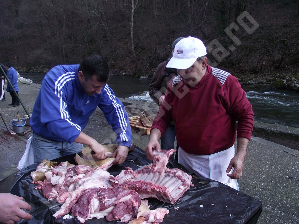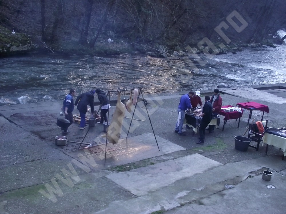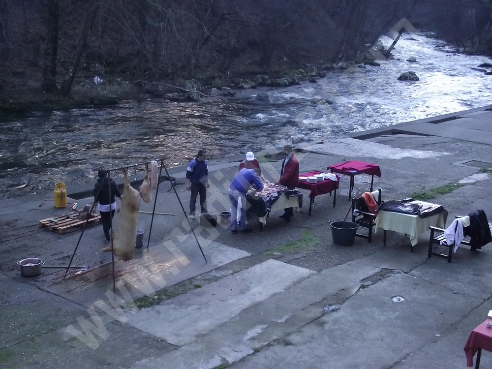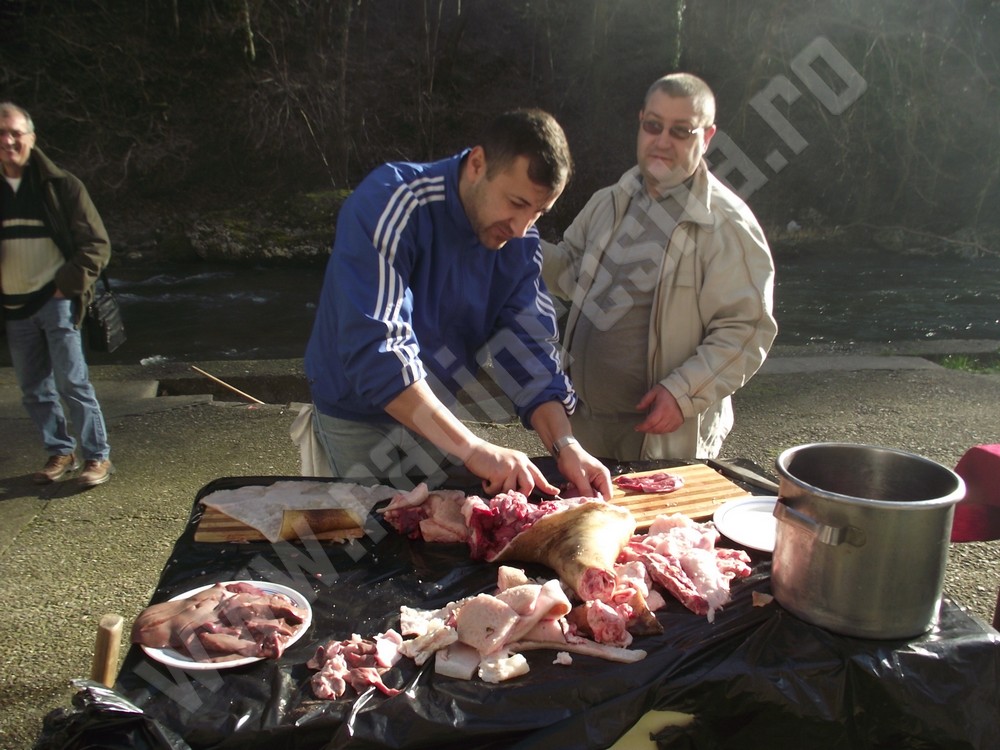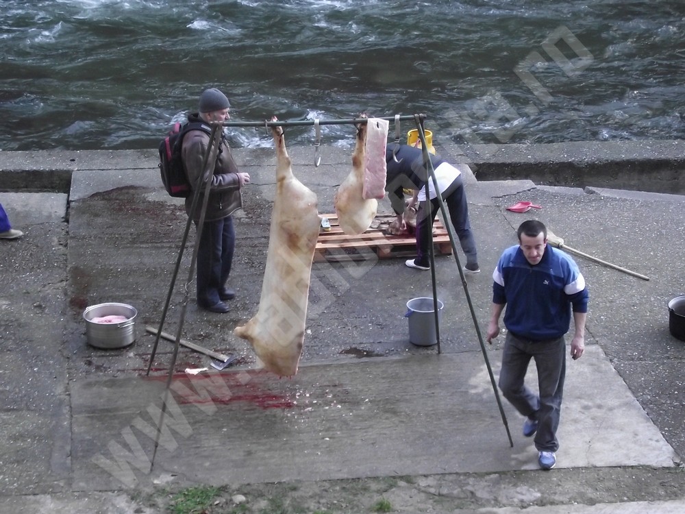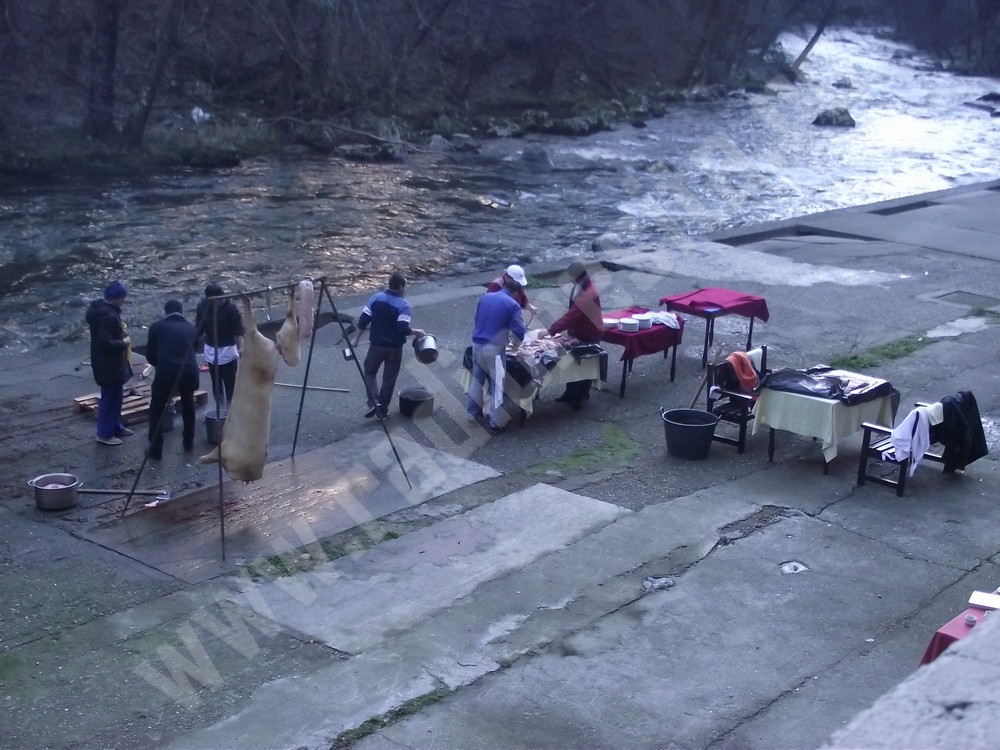 Tradiția sacrificării porcului pentru ziua Crăciunului a fost astăzi atracția turiștilor din stațiunea de pe Valea Cernei la demonstrația realizată pe esplanada Hotelului Roman, manifestare aflată în acest an la cea de-a doua ediție, la inițiativa lui Petru Bășulescu – administratorul hotelului. Cei care au trecut prin această zonă au avut prilejul să urmărească toate etapele sacrificării porcului, de la pârlirea acestuia până la tradiționala POMANA PORCULUI. Corespondentul nostru de pe Valea Cernei – Paul-Sever Smadu a participat la această acțiune și atmosfera creată de desfășurarea evenimentelor o vom simți în următorul reportaj: