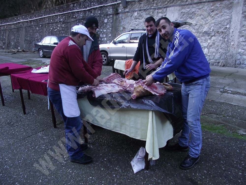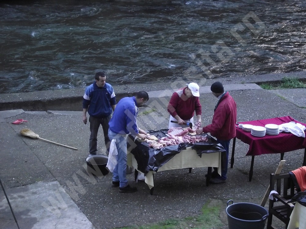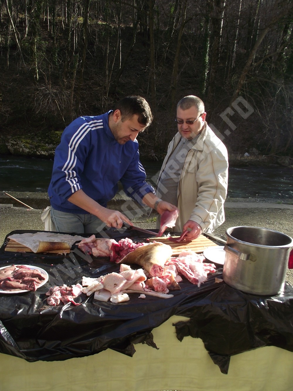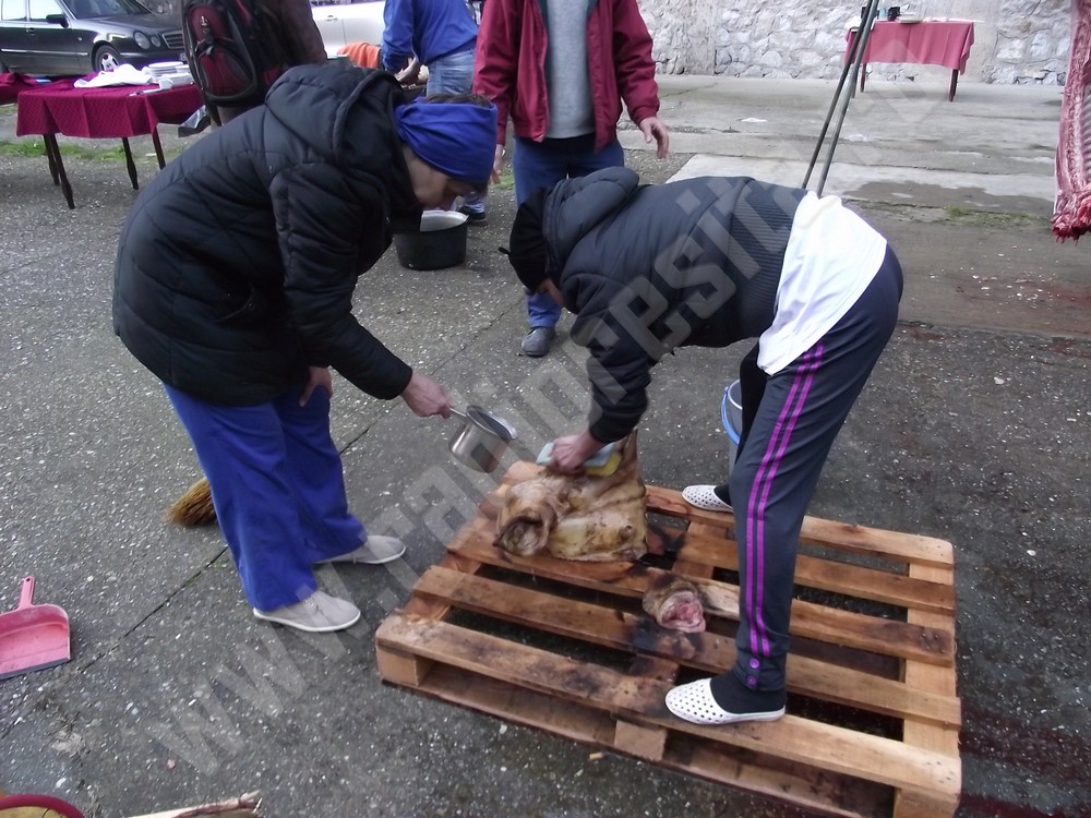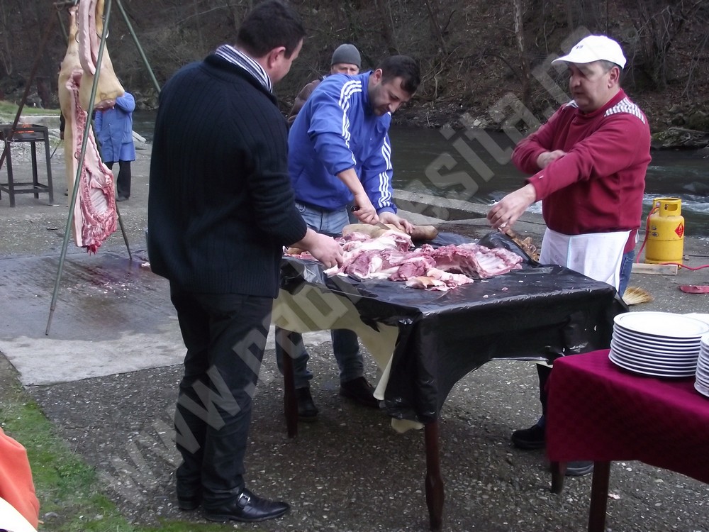 Tradiția sacrificării porcului pentru ziua Crăciunului a fost astăzi atracția turiștilor din stațiunea de pe Valea Cernei la demonstrația realizată pe esplanada Hotelului Roman, manifestare aflată în acest an la cea de-a doua ediție, la inițiativa lui Petru Bășulescu – administratorul hotelului. Cei care au trecut prin această zonă au avut prilejul să urmărească toate etapele sacrificării porcului, de la pârlirea acestuia până la tradiționala POMANA PORCULUI. Corespondentul nostru de pe Valea Cernei – Paul-Sever Smadu a participat la această acțiune și atmosfera creată de desfășurarea evenimentelor o vom simți în următorul reportaj: