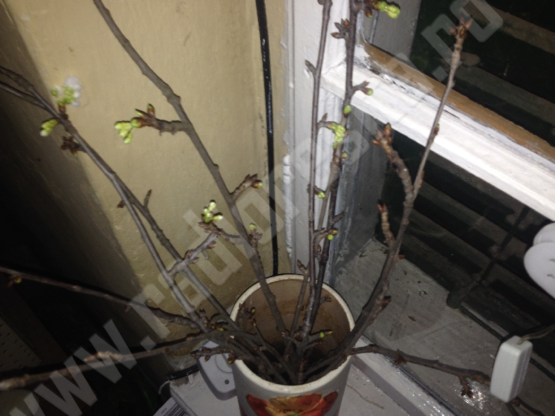 Vasul trebuie să stea într-o cameră încălzită (aproximativ 20°C), departe de razele directe ale soarelui. Apa se schimbă zilnic. Ramurile vor începe să înflorească aproximativ între o săptămână şi o lună.